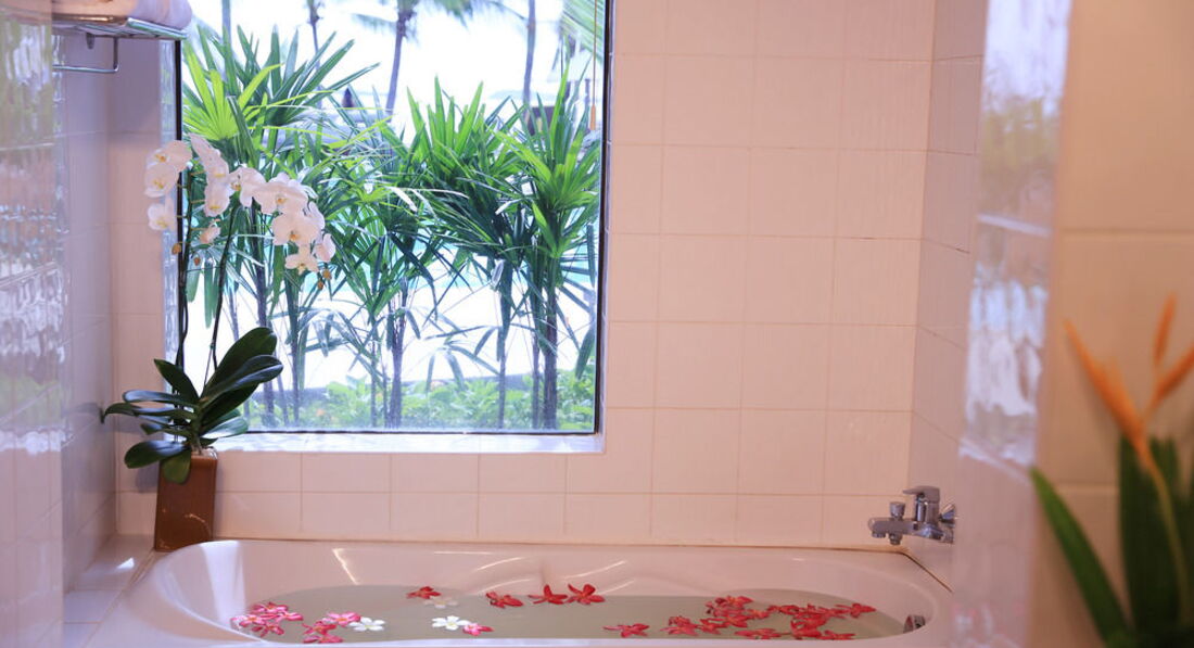 Нас встречали, несмотря на позднее время, (мы прилетели в 11 вечера на остров), с улыбками и с освежающим чаем. Быстро оформили и проводили в номера. Номер располагался на первом этаже с выходом к бассейну. Хороший номер для комфортного проживания трех человек. Убирались и меняли полотенца каждый день. И без чаевых в номере всегда был порядок. Душ, ванная, две раковины. Фумигатор от комаров.
