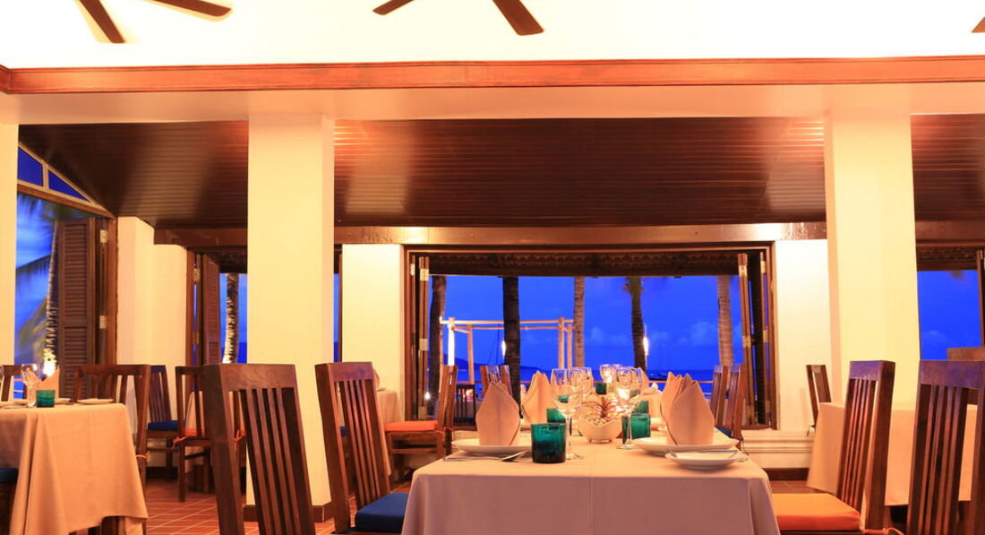 отель отличный, собственный пляж, несколько бассейнов, большая зеленая территория, неплохой ресторан, отсутствие анимации, несколько беспроводных сетей (и платные и бесплатные). из 10 дней 8 шел непрекращающийся дождь, виллы на первой линии чуть-чуть заливает, в дождливую погоду не комфортно, море мутновато, по пляжу в солнечные дни разносят свежие фрукты,какие-то шмотки и круги-матрасы, в шаговой доступности рыбацкая деревушка (длинная ресторанно-барная набережная), все вкусно, все замечательно. ресторанчики возле отеля тоже очень качественные.