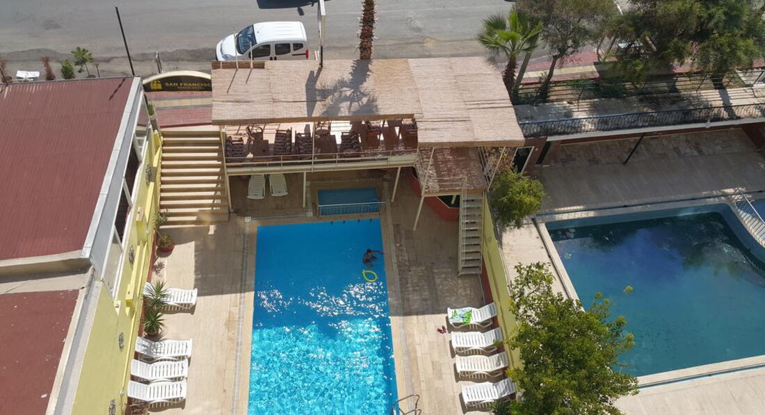 Отдыхала семьёй в начале июня. Отель небольшой, территория отеля маленькая, есть бассейн детский и взрослый. Атмосфера уютная и домашняя. Кормят вкусно и разнообразно. Фрукты и овощи есть. Море через дорогу, у отеля собственный пляж со своими шезлонгами и зонтиками, на пляже кафе(там всё платно). Возле отеля автобусная остановка, центр Алании в пяти минутах езды. Из минусов только что отель маленький. Есть русскоговорящий персонал.