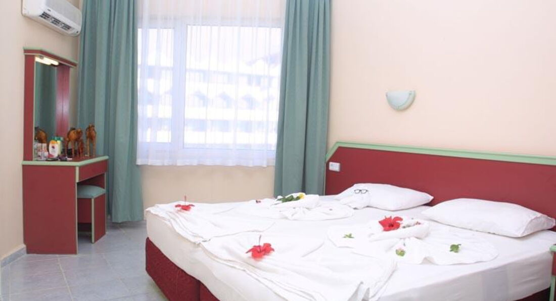 Отдыхали с 18.07.2015 по 25.07.2015, поехали по "Фортуне" с Анекс-Тур и попали именно в этот отель. (к стати еще 4-ре пары по "Фортуне" попали в этот период) Это был далеко не первый отдых, при этом имеем представления о 3-х, 4-ках и 5-ках. (Турции, Болгарии, Туниса и Египта) Возможно вот по этому и решились поехать по "Фортуне" - купились на цену... А цена действительна была отличной! Приехав в отель не расчитывайте что Вас встретят и помогут с багажем... С поселением совсем плохо..., приехав в 9:30, поселение в 12, но поселили только к 14:00. В номере все скромно, душевая в грибке, кондиционер с толстым слоем пыли и фактически не охлаждал. Радовало что хоть заселили, т.к. некоторых отдихающих поселили только под вечер... Нормер за 7 дней убирали только один раз, и тот на второй день, все остальные 6 дней несмотря на многочисленные просьбы никто и не думал убирать - и даже за чаевые. Как объяснили уволилась убощица и попросту некому убирать. Выбор по еде скромен, один вид мяса или рыба, если и то и другое - уже "праздник". Рис или макароны. Фрукты были, и был даже выбор: арбузы, сливы, яблоки, песики и виноград (иногда) - это один из плюсов. Сладостей выбора почти не было. Пляж свой и недалеко - мин. 1-2, но лежаков нехватало, море после обеда грязное. Аниматор только один, но он молодец, старался... Так что Ромео спасибо! Радовало размещение отеля - сразу через дорогу супермаркет где постоянно реальные распродажи одежди добротного качества. Рядом рынок, где также можно было скупитьтся, но надо торговаться. А в нескольких километрах - в самой Алании пляж Клеопатры, куда рекомендуем поехать (можно на авто или автобусом). Брали авто напрокат в самой гостиннице, но можно рискнуть и взять в этой же фирме но только через дорогу на рынке - будет на 20-30% дешевле. Только по туристическим местам на авто сложно - указателей как проехать к достопримечательностям нет. Подсказки месных - также не помогли. Вывод один - отдых устраивает сам отдыхающий, и несмотря на ряд существенных замечаний отдохнули хорошо!