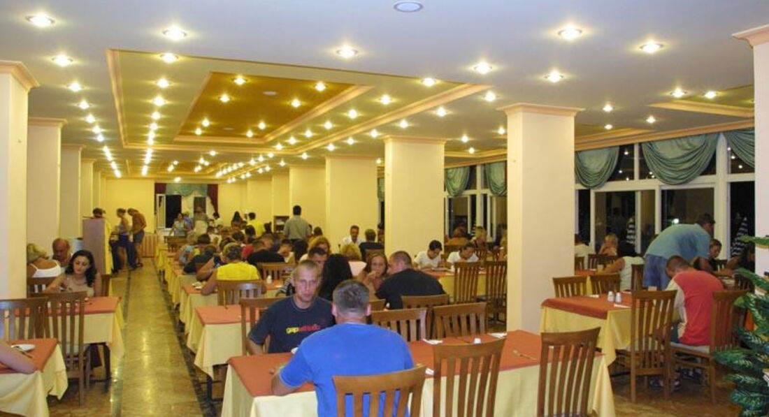 Отдельный разговор про ресторан, если так можно назвать его. Грязные, рваные скатерти, которые ни разу не менялись. Было такое, что мы приходили первые на завтрак, а на столе крошки , оставленные с ужина. Даже сделав замечание менеджеру, ситуация ни как не менялась. Меню скудное: курица или рыба (сомнительного вкуса), жареный перец или баклажаны, на гарнир можно брать фасоль, кукурузу или жаренные помидоры, а также рис и иногда лапша. Из закусок помидоры, огурцы, перец, нарезанные дольками или смешанные в салате с добавлением капусты. На сладком взгляд совсем не останавливался, так как у нас есть сравнение с другими отелями Турции, где оно подается так красиво и аппетитно. Из фруктов- яблоки, сливы, не сладкие арбузы, апельсины. Но больше всего поражает очередь в ресторан, которая собирается за минут 30 до его открытия и не потому, что люди так хотят есть, а потому, что если придти позднее может просто не хватить продуктов. Это для нас было шоком, такого не в одном отеле не видели. Посуда не всегда бывает промыта, прежде чем ее взять надо внимательно посмотреть. Питьевая вода есть только в двух кулерах : один около бассейна, а другой в ресторане и это на 6 этажей отеля!!!!! Поэтому пришлось покупать в магазине бутылки с водой, а потом набирать их с кулера, чтоб в комнате попить.