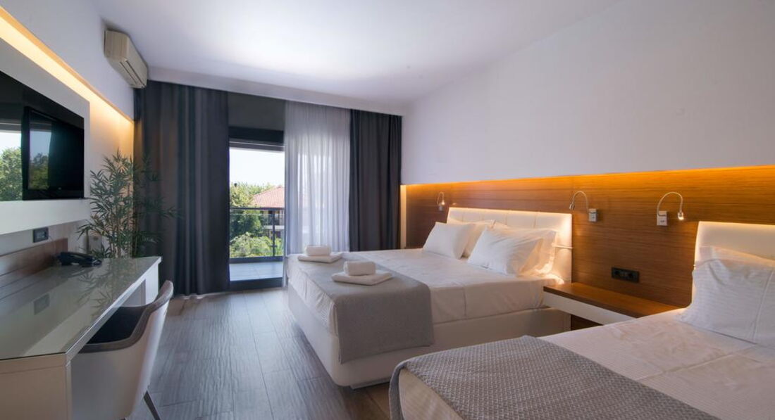 Реновація 2016 року! Оновлено номери Doubles Deluxe, Junior Suites, Family Deluxe. Всього 72 номери: Singles (~15 кв.м), Double Bungalows GV (~25 кв.м), Doubles Deluxe (~20-30 кв.м), Junior Suites (~40 кв.м), Family Bungalows (~ 25-30 кв.м), Family Deluxe (~30-35 кв.м). Типи номерів: Singles (~15 кв.м) Double Bungalow Garden View Розташовані в другій будівлі, побудованій в 2014 р. - на 1(ground floor) та 2-му поверхах. Двоспальне або 2 односпальні ліжка (і BunkBed). Double Deluxe Розташовані в центральній будівлі, оновлені в 2016 р. Двоспальне ліжко або 2 односпальні. Junior Suite Розташовані в третій будівлі, оновлені в 2016 р. Вітальня з розкладним диваном і велике двоспальне ліжко. Family Bungalows Розташовані у другій будівлі, побудованій у 2014 р. - на 1(ground floor) та 2-му поверхах. Двоспальне або 2 односпальні ліжка (і BunkBed). Family Deluxe Розташовані в третій будівлі, оновлені в 2016 р. 2 односпальні ліжка та двоспальне ліжко.У номері: Балкон/тераса Душ Кондиціонер Супутникове ТВ ТБ Телефон Фен на рецепції - на запит, є тільки у Junior Suites Холодильник