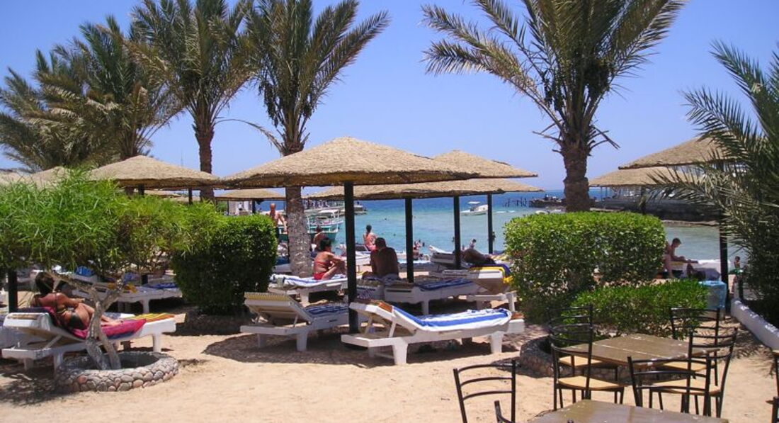 Пляж... Его нет. Есть некая бухта, которая больше похожа на сточную канаву с плавающими в воде очистками, объеденной кукурузой, пластиковыми стаканчиками из "ресторана" ,бутылками и арабами. Соответственно, кораллы там давно умерли, а последних рыб регулярно вылавливают с пирса каждый вечер голодные арабские рыбаки... И самое ужасное - на пляже не работает душ. ВООБЩЕ! ПО СООБРАЖЕНИЯМ ЭКОНОМИИ!!! Главный менеджер отеля, еле-еле говорящий по-английски (честное слово, не видела такого нигде, я преподаю иностранные языки и такого скудного английского у первого лица отеля не припомню!), нагло заявил, что душ на пляже работать не будет,т.к. в отеле очень много отдыхающих арабов, а они используют очень много воды! Поэтому в номере вода тоже была не всегда! Мы ходили принимать душ в номер, благо, что он был первый от моря (В4). Без душа в Египте нельзя, начинает разъедать кожу так, что нужно потом лечиться у дерматолога! Про лежаки не говорю - это старые развалины.
