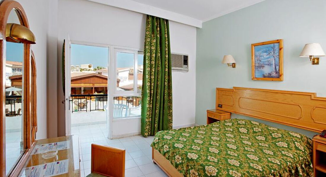 Отель старый. Очень и очень старый. Нас поселили в корпусе, в котором находится ресепшен, на втором этаже. Номер простой, небольшое деревянное окно (впервые вижу в отелях такие, обычно пластик во всю стену, даже в трешках), такая же дверь на балкон, стены - побелка. Старенькая мебель, полуразвалившаяся сантехника - короче, все прелести бюджетной старой трешки) Дополнительный "бонус" - прямо под нами оказался ночной клуб. Раза три за неделю наслаждались дребезжащими стеклами и подпрыгивающей в такт басам кроватью. Плюс отеля - наипервейшая линия, т.е. вы сразу попадаете на собственный пляж. Заход не глубокий, галька, кораллов нет. Бассейн выглядит очень привлекательно -на картинке. По факту в нем плавал какой-то очень плохо выглядевший мусор и маслянистые пятна, как от бензина. При всей моей любви поплескаться я так и не рискнула туда залезть.