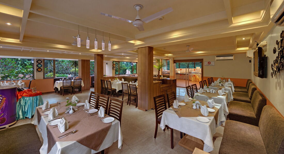 Сразу скажу,были с дочкой 1,5 лет!!!отель расположен НЕ УДАЧНО!выбирайте северный или южный Гоа(я бы поехала на юг)мы катались везде(но это такси-это около 1,5 тыс рублей в день только на дорогу)...от отеля есть пляж,и море..вернее река...по-этому не сравнить с океаном!сам отель чистый,персонал ОЧЕНЬ хороший!!!За дочкой смотрели постоянно,махали ей,правда они немного надоедают,постоянно старались потрогать её!Еда-это конечно отдельная история..."ноу спайси" а итог в рот еду не взять!у отеля ресторан хороший,но дорогой!!,а так как рядом нет ничего(не шеков-ни магазинов) покупать будешь еду в ресторане отеля!Для малышки брала коробку с детским питанием разным,купленным в России(картошка,мясо в баночках)!В отеле она ела рис с бефстрогановом,суп куриный!магазинов рядом нет,а те что есть в городе там детского не нашли(ну памперсы и прочее есть,еды нет)!конечно если есть у вас возможность оставить малыша с бабушками оставляйте...если парой ехать то гоа отличное место,берёте байк и поехали кататься!Страна интересная очень!на пляжах кушать правда аккуратно!мы отравились с мужем...если брать там что-то,то не блинчики,не омлеты(не надо молока!!)отель мне кажется больше для людей постоянных..приехал и лежи возле реки...или для командировок!кстати пилоты,стюардессы останавливаются именно в этом отеле)