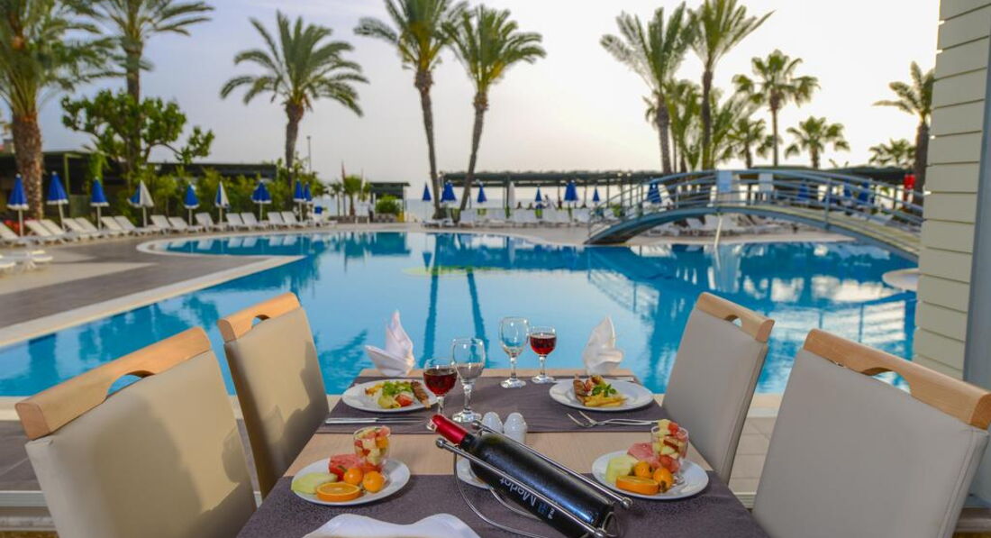 Територія та послуги: • бари: 2 • ресторани: 1 • басейни: 1 (відкритий) • біля басейну рушники: безкоштовно • біля басейну парасольки, шезлонги: безкоштовно • Wi-Fi безкоштовно Розваги та спорт: • сауна безкоштовно • турецька лазня (хаммам) безкоштовно • настільний теніс безкоштовно Для дітей: • дитячий майданчик • дитячий басейн • дитячий клуб (4-12 років) Живлення: • Все включено Пляж: Власний піщаний пляж. На пляжі парасольки, шезлонги, рушники: безкоштовно.