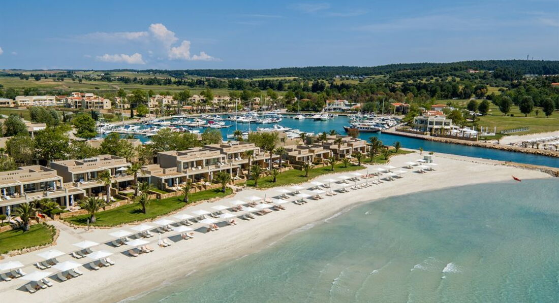 Входить до складу курорту Sani Resort. Курорт розташований на території екологічного заповідника площею 1000 гектарів із сосновим бором та піщаними пляжами. Готель був збудований у 2003 році, останній ремонт пройшов у 2016 році. Складається з головної будівлі та 11 додаткових корпусів. Всього 57 номерів.