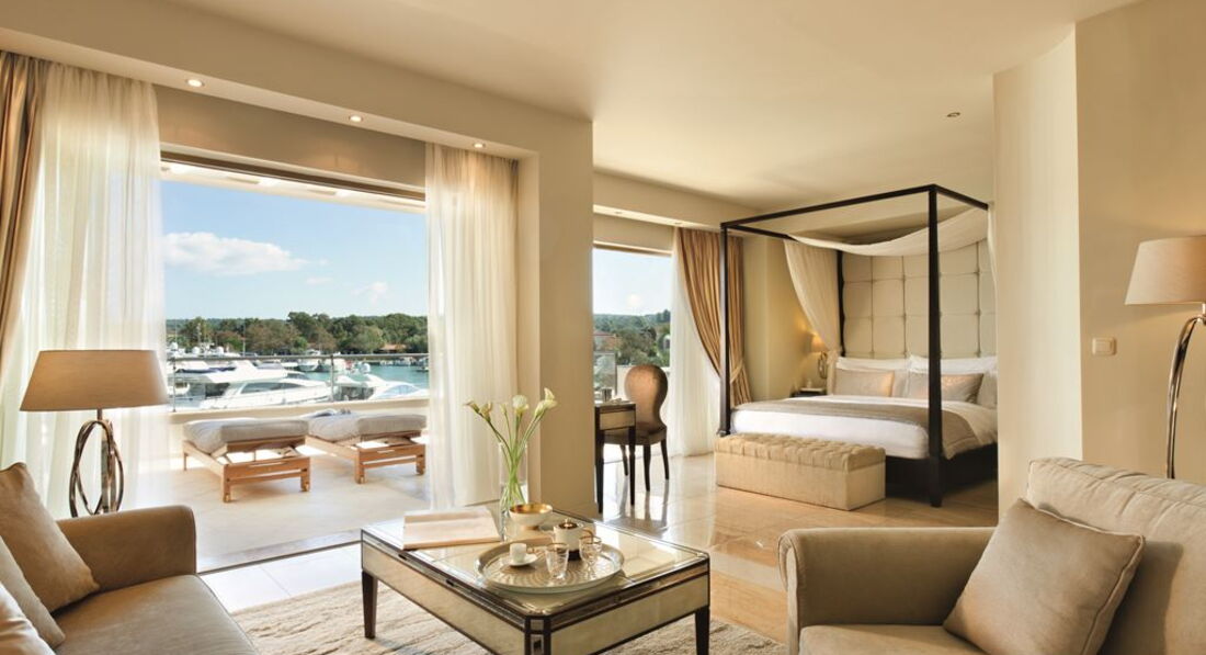 Типи номерів: junior suite marina view (вид на гавань, однокімнатний номер, осн. ліжко – двоспальне, дод. - односпальне або розкладне, макс. 2+1 чол., 50 м2); junior suite BF (вид на гавань або на пляж, однокімнатний номер, осн. ліжко – двоспальне, макс. 2 чол., 50 м2); suite marina front/BF (вид на гавань або на пляж, спальня з окремою вітальнею, осн. ліжко – дві односпальні або двоспальне, доп. – диван та односпальне ліжко або розкладне крісло, макс. 3+1 чол., 60 м2); family suite 2-bedrooms BF (вид на пляж, 2 спальні, вітальня, 2 ванні кімнати, осн. ліжко – двоспальне, дод. – 2 односпальні та диван, макс. 4+1 чол., 105 м2); deluxe suite BF (вид на пляж, спальня з гардеробною, окрема вітальня з обідньою зоною, 2 ванні кімнати, веранда з садом, осн. ліжко – двоспальне, доп. – диван та односпальне ліжко або розкладне крісло, макс. 3+1 чол. 90 м2); deluxe suite 2-bedrooms BF (вид на пляж, розташовані на другому поверсі двоповерхового корпусу, 2 спальні, вітальня, 2 ванні кімнати, осн. ліжко – двоспальне, доп. – 2 односпальні, диван та односпальне ліжко або розкладне крісло, макс. 4 +1 чол., 150 м2); deluxe suite 2-bedrooms marina front (вид на гавань, 2 спальні, вітальня, 2 ванні кімнати, осн. ліжко – двоспальне, дод. – 2 односпальні, диван та односпальне ліжко або розкладне крісло, макс. 4+1 чол., 130 м2); deluxe 3-bedroom suite private pool (3 спальні, окрема вітальня зі столовою зоною, 3 ванні кімнати, індивідуальний басейн (45 м2), осн. ліжко – двоспальне, додаткове – двоспальне, 2 односпальні та софа, макс. 6+1 чол ., 180 м2).У номері: сейф: у номері, безкоштовно (електронний) ванна та душ набір для приготування чаю/кави зміна білизни: щодня room service: платно банні приналежності кондиціонер: центральний (з індивідуальним контролем, безкоштовно) зміна рушників: щодня прибирання номера: щоденно CD/DVD-програвач телефон підлога: керамічна плитка капці балкон або тераса фен: є ТБ: супутникове міні-бар платно кавоварка (Nespresso) Інтернет: Wi-Fi, безкоштовно халат
