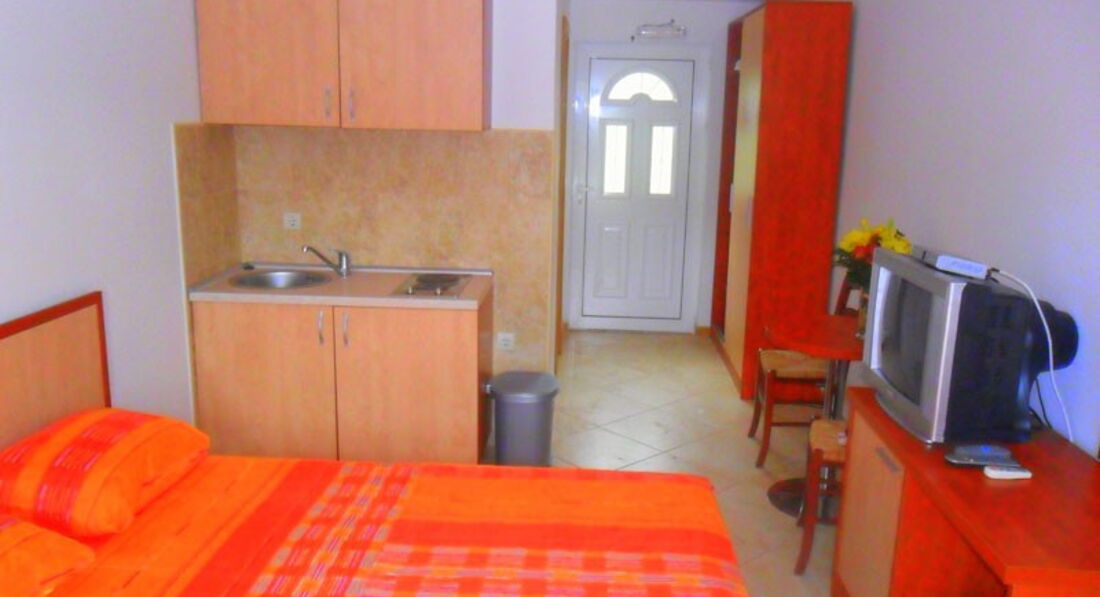 Невеликий поверховий будинок. Для розміщення пропонуються 5 затишних номерів – дво- та тримісні студії (20м2 – 25м2) а також апартамент 2+2 (30м2).