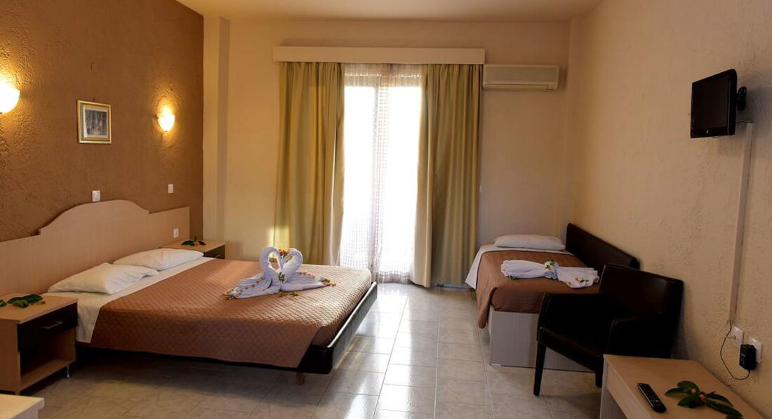 Розташування: Готель розташований на острові Родос, в мальовничому селі Тріанта, на відстані 1 км від пляжу Родоського акрополя, а ось що б дістатися до міжнародного аеропорту Родосу, необхідно проїхати 3 км на транспорті, і 7 км, щоб потрапити до міста Родос і порт.