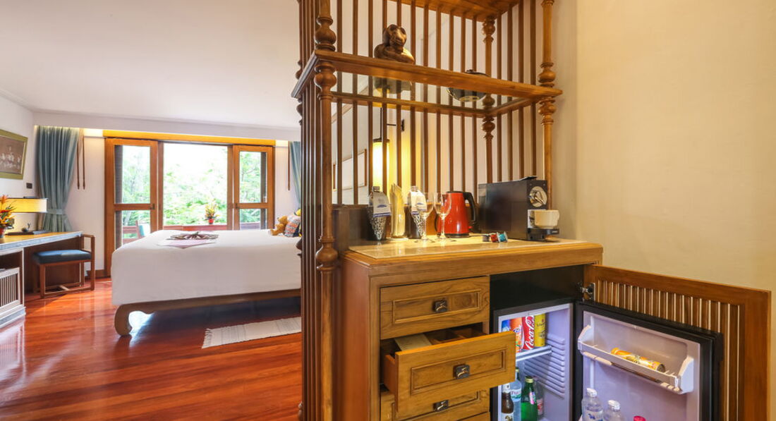 У готелі дві двоповерхові будівлі та вілли в тайському стилі, розташовані в тропічному саду з ставком та каналами.