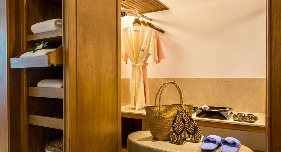 В номере множество мелочей, которые приятно удивили (пляжная сумка, плетеная шляпа от солнца, соль для ванны, вода питьевая в неограниченном количестве, вино, фрукты в номере каждый день).