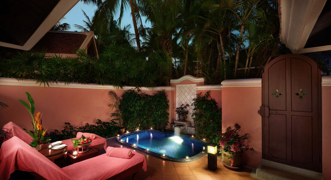 6 Spa Pool Villa (розташовані в саду, спальня з дверима, вітальня, басейн 9х4 м, альтанка для SPA-процедур на відкритому повітрі поряд з басейном, послуги дворецького, макс. 2+1 чол., заг. пл. ділянки вілли 285 м2 ).