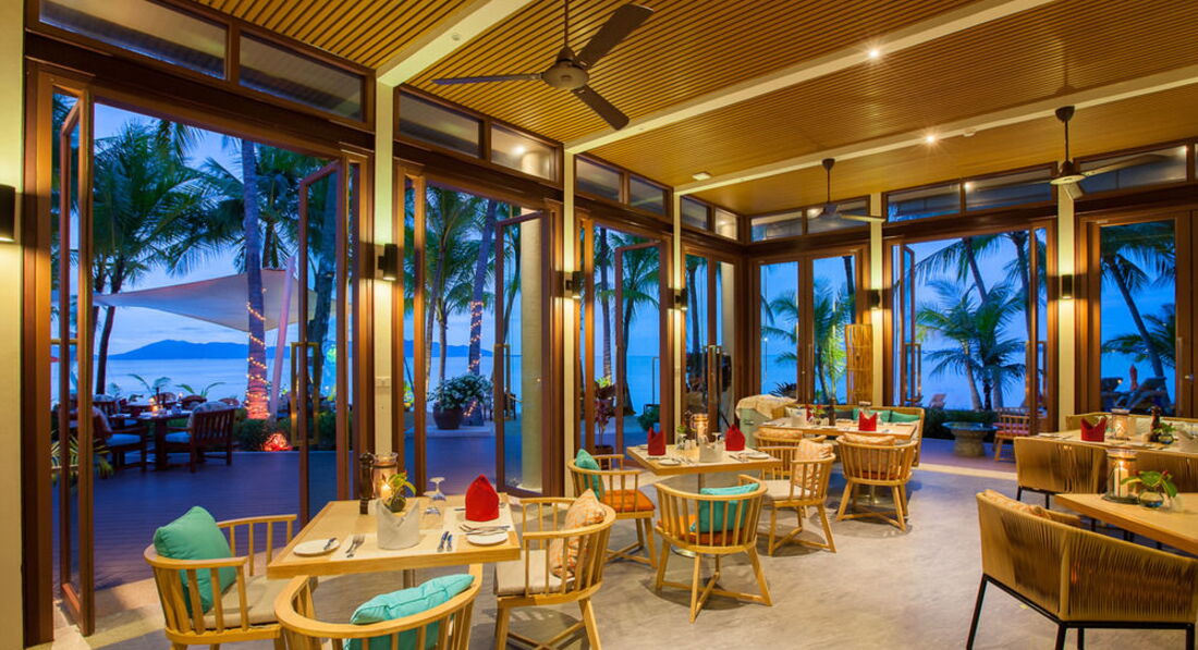 Уникальный отель. Настоящий тропический рай. Территория утопает в зелени, и о чудо - вопреки тайским законам о национализации пляжей здесь и только здесь вы найдете роскошные лежаки прямо на песчаном пляже, под сенью пальм, с которых тщательным образом сбивают орехи во избежание попадания в голову - редий сервис. Как только подходишь к лежаку - сразу материализуется специально обученный человек, который во мгновение ока накрывает его полотенцами, ставит воду и предлагает освежающий сорбет. Гастрономические впечатления - отдельный разговор. Взять хотя бы домик-станцию, где в вашем присутствии готовят немыслимое (и неограниченное) количество фрешей - от мангового до морковного. Ужины на берегу - выше всех похвал, авторская интерпретация блюд, некоторые из них настоящие кулинарные шедевры. Искренне полюбили официанта, который проходил под кодовым именем "хохотунчик" - столько искренности в одном человеке, наша дочь его обожает. Конечно, много морепродуктов, все тает во рту. Так и не дошли до хваленого тайского ресторана, потому как до этого путешествовали по Пхукету и уже присытились местной кухней - но думаю, там все тоже на высоте.