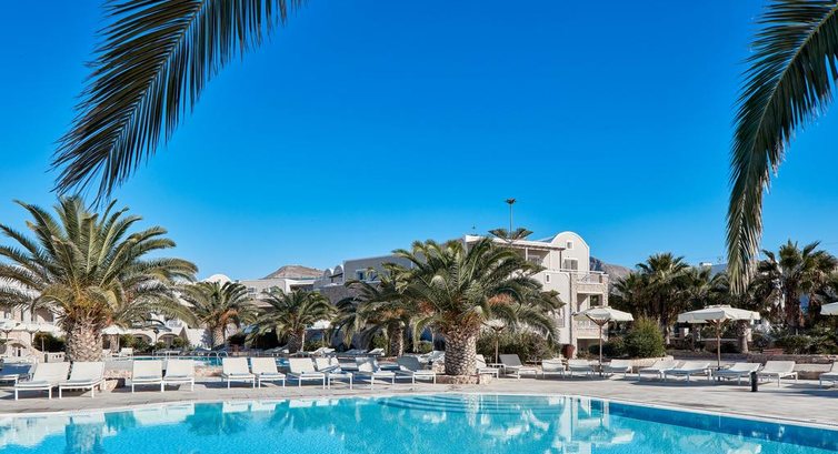 Готель Santo Miramare розташований на пляжі Періволос, Санторіні, неподалік від численних пляжних барів, ресторанів, за 13 км від аеропорту і за 12 км від порту.