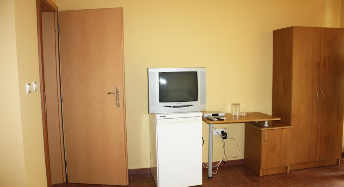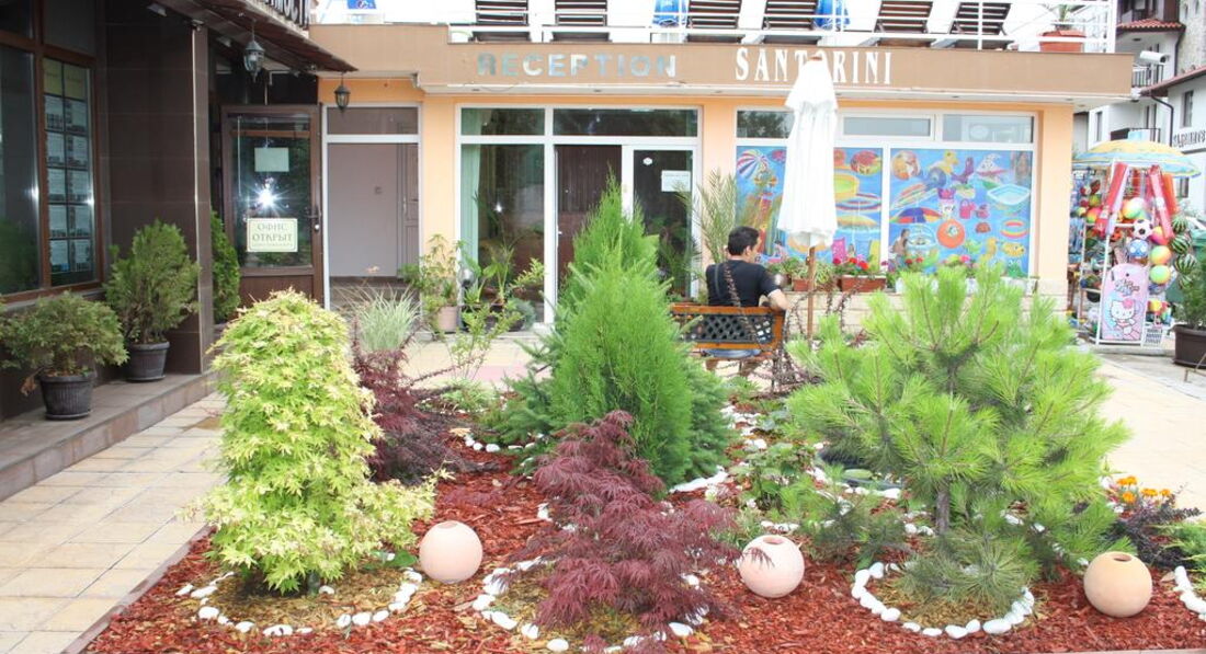 Отель выбрала из-за низкой цены и близости к морю. В первый день хозяин любезно донес мой чемодан до номера. Есть несколько входов типа как в "парадную". Моя парадная была предпоследняя, номер на второй этаже, на который надо подниматься по винтовой каменной лестнице. В номере было 3 кровати, шкаф, тумбочка, холодильник, телевизор, кресло, старенький кондиционер. Мебель дешевая, но в очень хорошем состоянии, белье и номер чистые. На балконе стандартно стол и веревка. В ванной стандартно для болгарии отсутствие на полу подъема для приема душа, поэтому при приеме душа весь пол в ванной в воде и маленькое окошко для проветривание. Номера выходят в основном на соседний отель и меньшей частью на улочку. В соседнем отеле есть горка в бассейне, поэтому дети там визжат и иногда включают музыку в баре. В Санторини бассейн маленький и рядом с ним стоят несколько лежаков с зонтиками. Улочка рядом с отелем не оживленная, машины ходят не часто. Не знаю почему в описании указано, что он на 1 линии, на самом деле на 2. По улочке дойти пару минут до пляжа. Пляж маленький и многолюдный, с левой стороны стоянка яхт, с другой стороны каменистый участок. На пляж я сходила один раз. Все остальное время я ездила на экскурсии. Чтобы дойти до автобусной остановки и шоппинговой улицы Царь Симеон, надо подниматься от отеля в довольно крутую горку. Завтраки у меня были оплачены, но была на них пару раз, в те дни давали яйцо+набор для бутерброда+кусочки огурца и помидора+чай. Хозяйка по русски не понимает, с ней можно объясняться на пальцах, персонала кроме уборщиц и одной официантки в кафе нет. Если попросить сухой завтрак на экскурсии, то дают пару бутербродов+бутылка воды и помидор. Вайфай в номере был пару дней без пароля, потом поставили пароль, его я выяснять не стала, было лень.