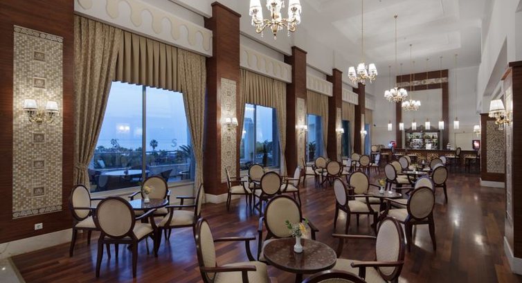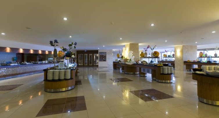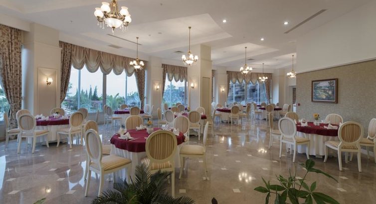 Бари та ресторани: головний ресторан розрахований на 1000 осіб (критий, з кондиціонером, літня тераса, дитяче меню (19:00-21:00), дієтичне меню, дитячі стільці), лобі-бар (10:00-23:00 - безкоштовно), бар на пляжі (10:00-17:00), бар біля басейну (10:00-24:00), снек-бар (11:30-16:30), диско-бар (23:00- 02:30, платно). 2 ресторани A la Carte: італійська, турецька - платно, за попередньою резервацією.