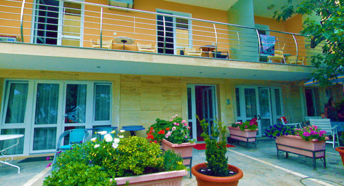 Пляж: за 150 м від готелю, муніципальний, червона дрібна галька. Парасолі та лежаки - платні.
