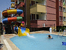 Добирались до отеля приблизительно 2 часа. Пейзаж до самой Аланьи скудный и неинтересный. В номер заселили практически сразу (было бы сразу, если бы он был готов, однако его еще убирали.) По - порядку. Территория: маленькая, но зеленая и ухоженная. Три семиэтажных корпуса. Мы жили в самом старом, я так понимаю, но вполне приличном ("С") Номер большой, но в нашем случае с огромным минусом- кондиционер прямо напротив кровати , что называется "лоб в лоб"(это ж надо додуматься!) Да, номера убираются ежедневно, но уборка никакая. Полотенца не меняли ни разу! В номере маленький и пустой холодильник, старенький, но работающий телевизор. Из плюсов - балкон. Что касается досуга. Есть хороший бассейн, вода чистая. Детская водная горка работает дважды в день, по 30 минут. Есть стол для игры в теннис (правда со странным на мой взгляд ограничением по-возрасту - нельзя детям до 14-ти лет.) Из развлечений - все. Анимации нет никакой ни днем, ни вечером (музыка для детворы под одно и тоже не в счет.) Главным плюсом отеля является расстояние до пляжа - через дорогу или по подземному переходу - 2 минуты. Пляж небольшой, не очень чистый. Лежаки платные - 2 доллара на день. Бар до 18.00 (платный.) У нас был с собой каремат, так что размещались и на нем в том числе. Заход в море нормальный (кое-где попадаются крупные камни, но специальная обувь не нужна.) После обеда вода в море становится грязной. Можно ездить автобусом до пляжа Клеопатра, там получше. Кухня: голодными не останетесь, но и изысков не ждите. Из мяса курица в разных вариациях, скумбрия (сухая очень) и нечто напоминающее шпроты - все. Овощи превалируют, вполне съедобно. Фрукты: кислющие зеленые сливы (для меня так и осталось загадкой для кого они такие?), несколько раз арбуз (вкусный), апельсины (вкусные), один раз были яблоки (вкусные) и единожды черешня (гниловатая.) Пирожные по виду разные, на вкус однообразные :)) Напитки вполне сносные, особенно пиво, оно вкуснее чем в Египте (на Жигулевское похоже) В общем как я уже сказала, с голоду не умрете (но, мне на четвертый день уже хотелось домашней еды) Отдельно хочу сказать об экскурсиях. У отельных гидов в два раза дороже. Не берите. Они ссылаются на мнимую безопасность, но это ничем не подкреплено. Мы брали одну поездку у нашего гида - в хамам (приехал неопрятный турок без опознавательных знаков тур оператора с ним и путешествовали) и покупали один тур -на рафтинг у Ромы (он так себя и позиционирует), практически с тем же сопровождением :)) Только стоит поездка в двое дешевле, а коэффициент безопасности в обеих случаях равен "0" Кстати, рафтинг очень рекомендую, даже для новичков, но стоимость поездки сразу умножайте на два :)) В целом отдых удался ибо с каким настроением поедешь, так его и проведешь. Однако, в следующий раз я сюда уже не приехала бы.