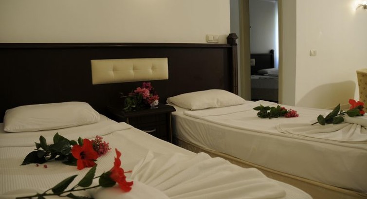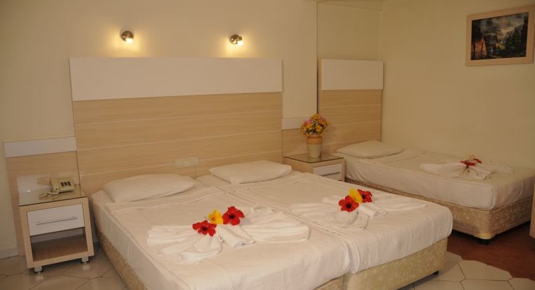 Отдыхали с дочерью с 03.06.-16.06.2017. Почти полностью согласна с тремя последними отзывами, но буду тоже по порядку: 1-трансфер: Tez toyr персонал молодцы, транспорт отличный. Только ехать примерно 2,5 часа. 2-заселение:приехали в 8.30 утра, нас проводили на завтрак и после сразу заселили. 3-номер нормальный(сантехника,фен,телевизор,кондёр- всё рабочее), заселили двоих в трёхместный. 4-уборка номеров заключалась в том что мочили пол, добавляли туалетную бумагу и красивенько укладывали пледики. Постель за 13 дней не меняли, а может и меняли, не знаем (оно серое). Полотенце поменяли на восьмой день(серенькие на серенькие) только два маленьких, полотенце для ног одно, поменяли на десятый день. Чаевые не оставляйте- бесполезно(люди пробовали).5-Анимации нет, но музыка весь день(хороший диджей). Через день-два артисты. 6- экскурсии покупали у Ромы (из отеля на право до магазинчика, возле него столик с диванчиками деревянными, может быть сам Рома или девушка) брали квадрики- не интересные, а вот его экскурсия по субботам на джипах- просто класс 35$ c человека. На корабль покупали сами в порту 20$ c человека (ехали на автобусе 101 или 1, на абум выходили и шли к морю, да и там много туристов выходит) В порту красиво, выбор кораблей огромный.7- бар: из алкоголя пробовала только пиво-нормальное. 8- пляж: вход хороший, на камнях гоняли крабов,видели всяких мальков,улиток, раков- отшельников и морских ежей(очень понравилось,не скучали). 9- кухня: хорошее описание в предыдущих трёх отзывах, кушать приходилось то что было(помидор переели), малышей кормить нечем. Фрукты и клубнику покупали по понедельникам и четвергам на рынке( был за отелем). Доллары меняли на лиры на receptione(1$-3,5TL). Уезжали в 7.30 утра на завтрак не успевали (завтрак и обед оплачены) Хотели взять в дорогу уже готовых четыре блинчика, но не тут то было, на их "защиту"(блинов) встали грудью повар с гриля и повар со столовой, агрессивно утверждая что их хозяин буде ругать, отбили маленькие булочки у молодых официантов, если бы не булочки умерли бы с голоду до самолёта (опаздывали). Такой бред я ещё не видела, встречают с улыбкой, а провожают с оскалом. Если хотите только море и экскурсии, то вам сюда, если к этому + быт- то не советую. И ещё, дворнику и садовнику огромная благодарность за ухоженную территорию, если бы не они, я бы три не поставила. Надеюсь что кому-то помогу не испортить отпуск и впечатление.