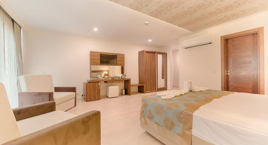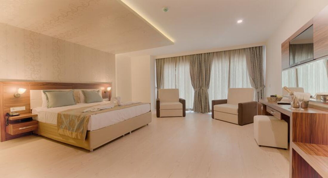 Розташування: за 30 км від аеропорту, за 35 км від центру м. Анталья, за 2 км від селища Кадріє, за 1,3 км від власного пляжу.