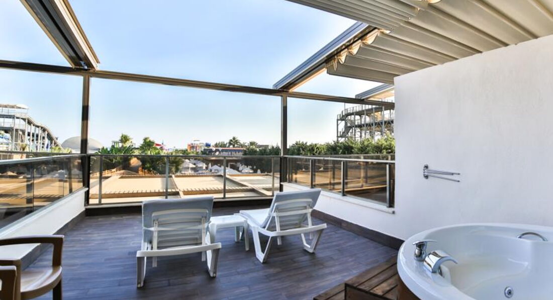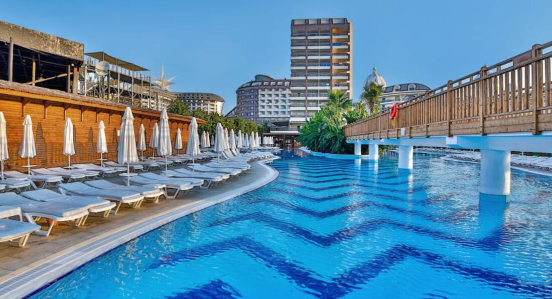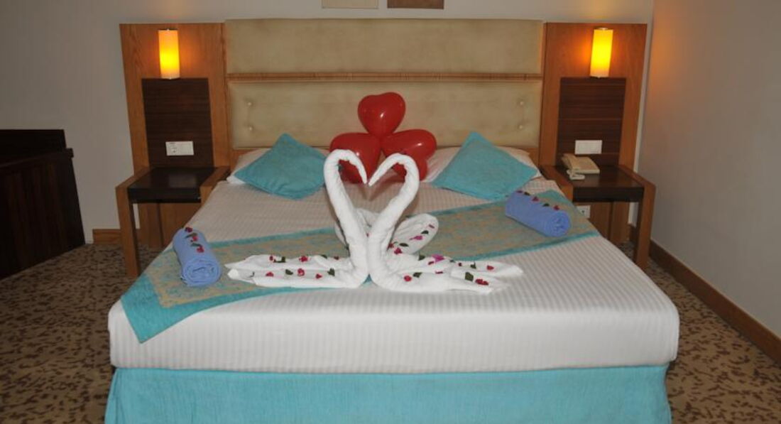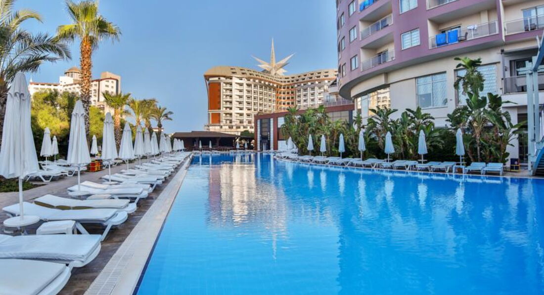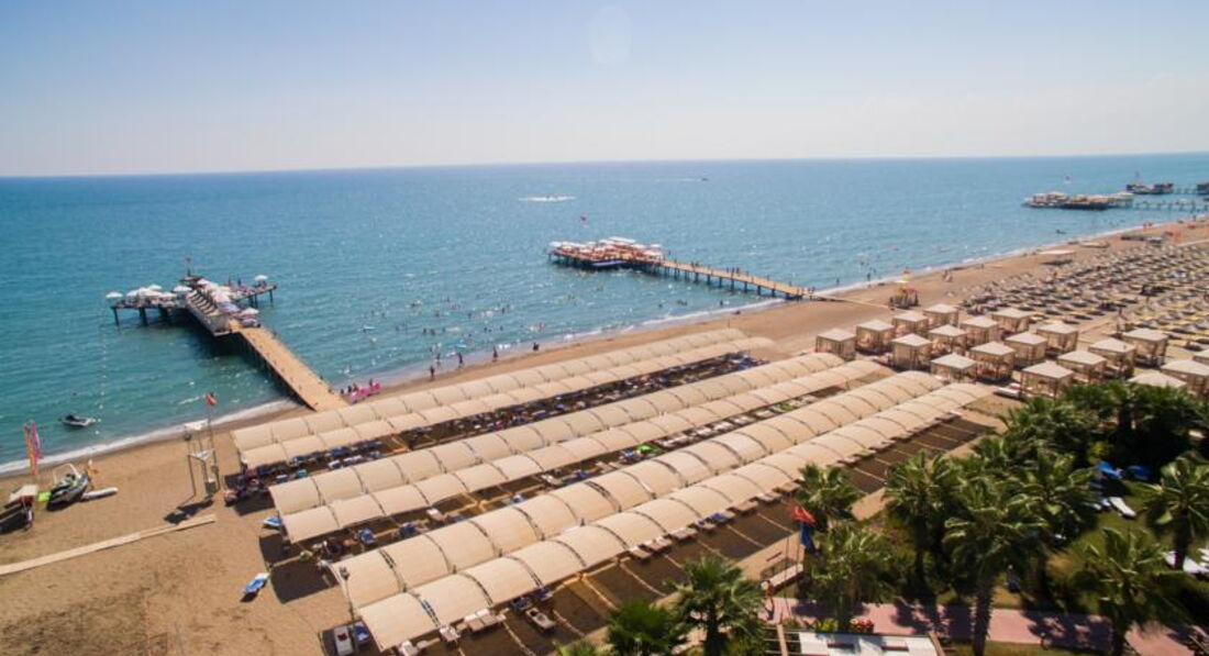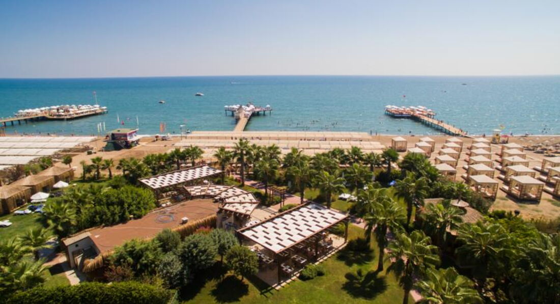 Думал отзыв оставил, а он был в черновике. Ну в общем так. Расположение отеля от аэропорта очень близко. Ехали минут 20, не больше.Приехали в отель в 07-40, заселили в 14-20. Номер стандартный, вид не на море. Думали с дороги посидим в лобби баре, отдохнём, попьём коктели.Но Кондиционеры в лобби не включают. Просто не включают. 5* UAL. Посидели 5 минут, футболки прилипли к телу. Спросили на лоббино не на русском ни на английском типо не понимаю. Ушли на улицу в тень, что не очень помогло. На протяжении всего отпуска так и не включали. Ну это ладно, вечером сидели на улице. Но. Представьте себе, вы нажаритесь на пляже с утра и приходите после обеда в номер отдохнуть и охладиться АгаКак бы не так. Кондиционер с 12 до 17 не работает на охлаждение. Ночью с 11 до 07 то же. Только дует, как вентилятор. В номере жара. На рецепшен, типо, не понимают, переводил через гугл переводчик, говорят это нормально. Обратились к представителю Анекс Тура, но она слилась и на телефон не отвечала. Были мы с друзьями, у них то же самое в номере. В итоге мне один человек сказал, что отель тупо экономит на эл.энергии. Отель чисто немецкий. Кругом одни немцы и все поголовно с сигаретами. Везде- пляж, ресторан, бассейн, балкон дымят бесконечно. В ресторане обсуживают только немцев. К русским не подходят в принципе. Уборка со столов слабая, долго стоят грязные тарелки, что сесть не куда. Когда обращаешься к официантам, то с отвращением смахнут крошки со стола на стулья, уберут посуду и не положат новые приборы. Вилки приходится искать по ресторану. Питание обычное турецкое. Правда несколько дней на ужин выставляли головку сыра с плесенью упакованную. На третий день я попросил кусок у официанта. Нихт фирштейн! Гугл в помощь тогда. Не могу, говорит, запакованная. Зови старшего тогда. Пришел старший, гугл объяснил ему, кто тут чего хочет и кто чего должен, и в итоге отрезали мне кусочек. И, после уже распакованный выставили на стол. Ну и туристы за 5 минут его уже весь и распробовали, правда разрезал и подавал его отдельный официант. Алкоголь мерзость редкостная. Лучше с собой везти. Море и заход в него были супер. Песочек. Но был один момент, когда двум туристам морские черепахи откусили по несколько сотен грамм мяса с ног во время купания. Море