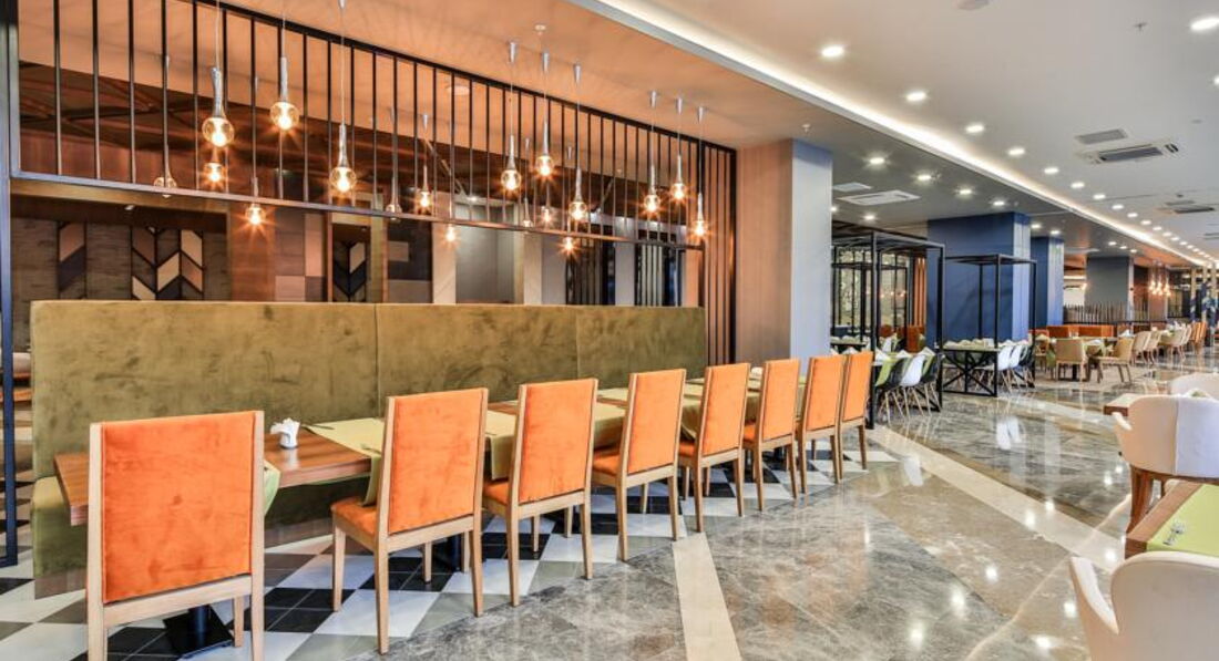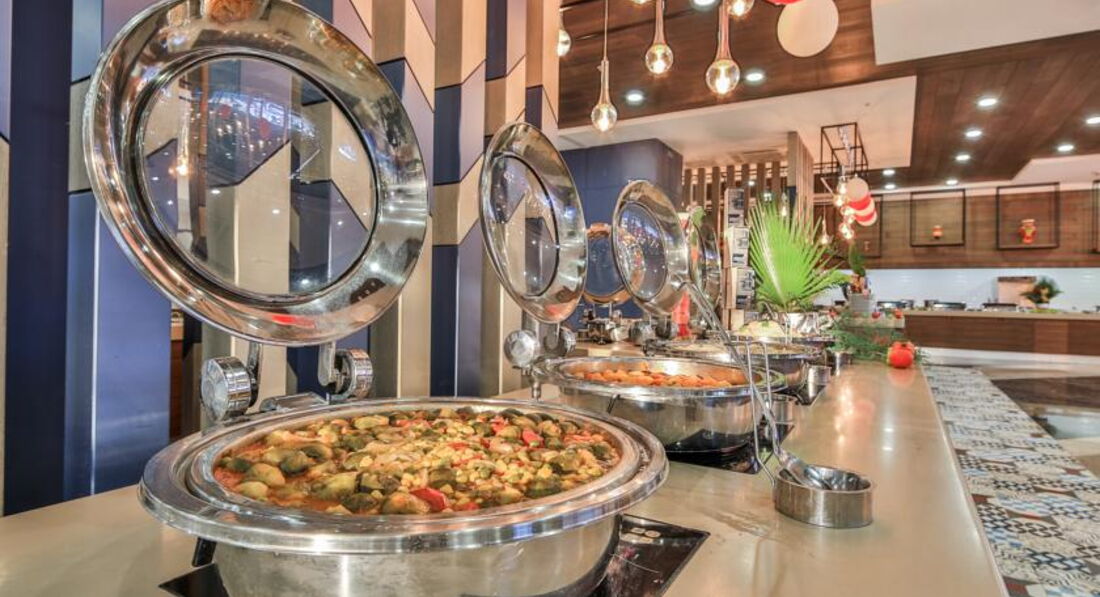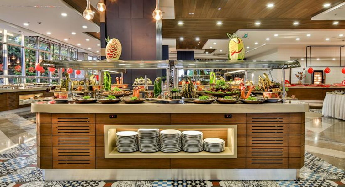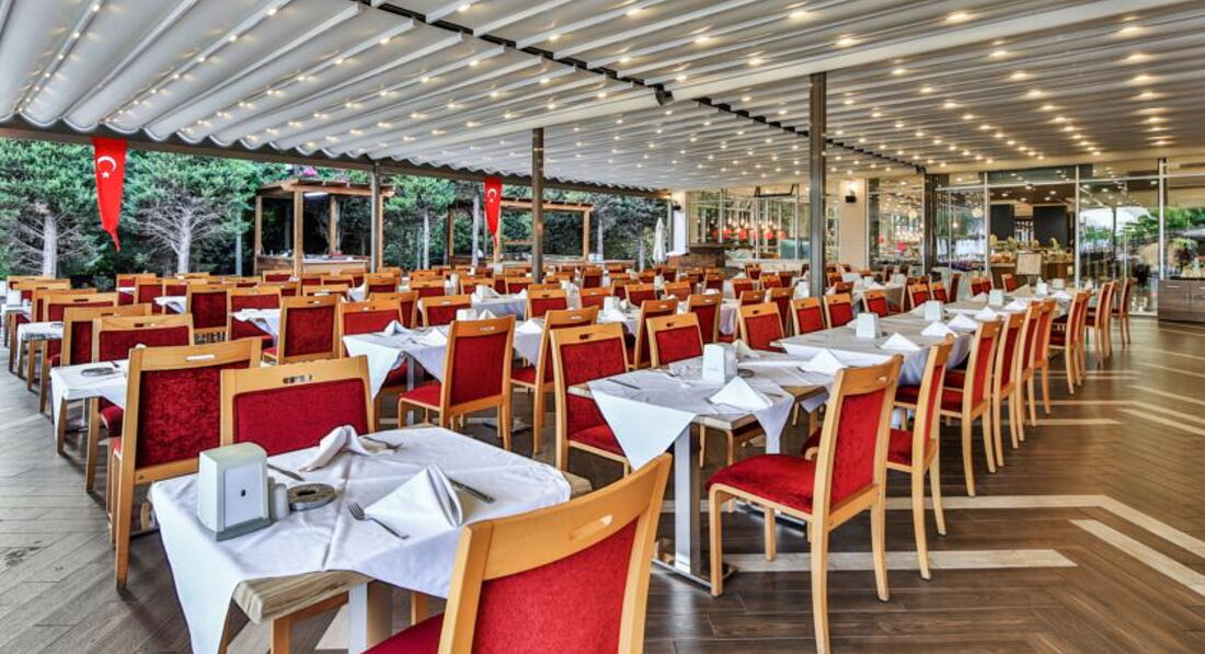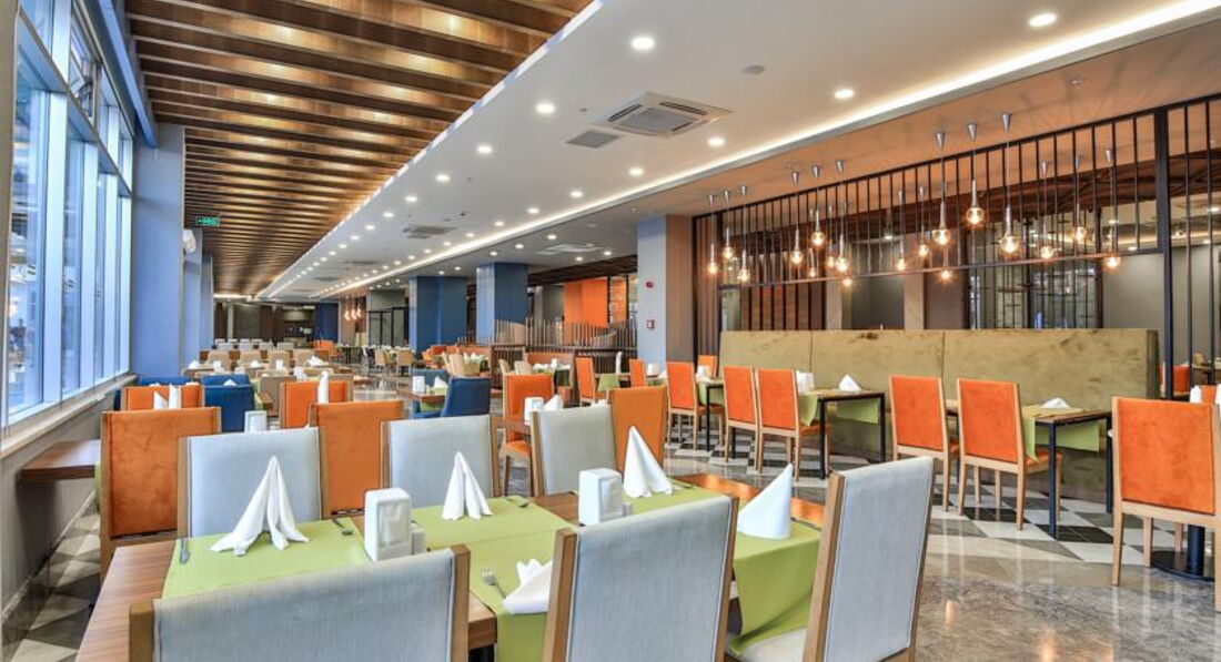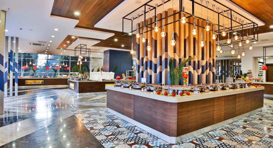 Бари та ресторани: головний ресторан, лобі-бар, бар біля басейну, бар на пляжі, диско-бар, вітамін-бар, аква-бар; ресторан A la Carte: італійська – за попередньою резервацією столика.