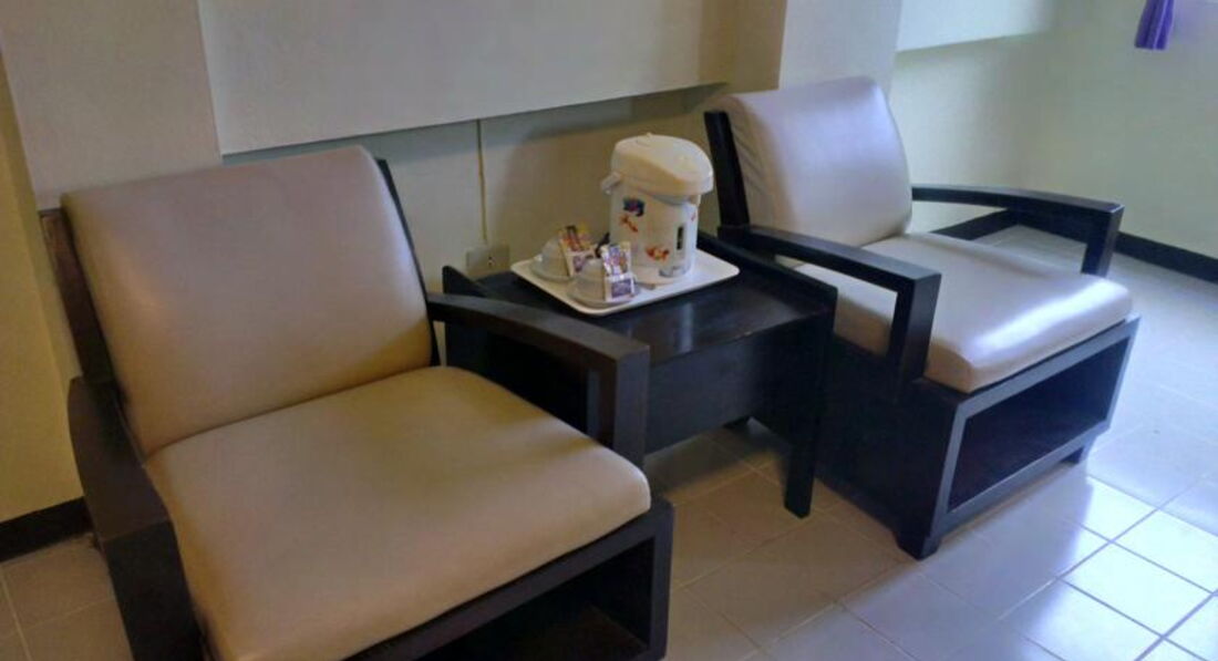 Летела я дешевыми РоялФлайт, кресла очень не удобные и очень тесно, откинуться и выпрямиться почти нереально. Для больших людей думаю было бы крайне мучительно 12 часов такого жескача. Потом еще 3 часа в автобусе с Бангкока до Паттайи. Понятно что по прибытию первым делом массаж ног, а ноги надо сказать разбухли у всех порядочно, засыпала с болью. С утра правда все восстановилось. Номер дали на первом этаже с окном в коридор. Когда попросила поменять сказали 225 батт в сутки и поменяют. Зашла посмотреть на что меняют и поняла что разница лишь в окне с видом на соседние крыши стены и осталась в своем номере. В белье были прожжены дырки явно от сигарет. Запах табака кажется въелся в стены, матрас, подушки, шкафы, как не старалась жечь благовония ничто не помогало. Мебель очень грязная и старая. В углах паутина с паучками, пыль. Так что мне пришлось убираться самой, но я была готова и к этому. Главным плюсом это хороший напор воды, интернет, чайник, холодильник и кондиционер, а убраться я и сама могу. Прочитав заранее отзывы я запаслась тройником, что очень меня выручило, т.к. чайник то есть, но включиться ему некуда. Только если отключить холодильник или телевизор.