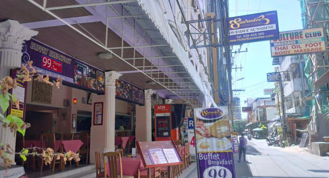 Приехал недавно из Таиланда. Был там не в первый раз. Были проблемы с отпуском, поэтому путевку покупал в последние дни, за три дня до вылета, обошлась она мне дороже и из отелей не сильно большой выбор был, поэтому я оказался в Sawasdee Sunshine, а не там где изначально планировал. Хочу рассказать про отель как есть, не давая особо оценок. Отель конечно не тройка, максимум двойка, территории у него нет. Находится отель в переулке между улицами Секонд роуд и Сои Буакао. Отдыхал один. Приехал я около 8 утра, заселили сразу, но сначала запросили депозит 500 бат. Батов не было, пришлось бегать по улицам искать обменник. Так рано они не работали, поэтому ничего не обменял, пришлось оставить на ресепшене в залог паспорт. Номер дали на четвертом этаже № 307 (на первом этаже ресепшин, место для завтраков – не знаю как по другому назвать и разные подсобные помещения), поэтому нумерация номеров начинается – с единицы второй этаж, с двойки третий и т.д. Лифт в отеле отсутствует. Номер у меня был стандарт и совсем не впечатлил. Первое - это его очень скромные размеры, поставил чемодан и практически половину свободного пространства занял. В предыдущие поездки номера в отелях у меня были просторные. В номере: кровать, тумбочка с телевизором, шкаф, холодильник - вся мебель старая сильно пошарпанная. Также в номере был фен и чайник. Кондиционер доисторической конструкции, без пульта, охлаждал слабо. Возле входа небольшая раковина. В туалете душ возле унитаза, вода уходит в дырку в полу, электрический обогреватель воды был сломан. И что интересно отсутствовало окно на улицу, было небольшое окно в общий коридор, задернутое шторой. На телевизоре было пять русских каналов. Сейф имеется на ресепшене. В номере было всего две розетки, в которые включены были холодильник и телевизор. Чтобы воткнуть зарядку на телефон, надо, что-то выключить. Зарядки в розетках не держались, так как гнезда были раздолбанные. В принципе я не сильно прихотливый, но чтобы ночью спать мне нужна прохлада. В первую ночь я не мог уснуть из-за духоты, всю ночь бегал мочил полотенце и укрывался им, кондиционер совсем не помогал. Еще на себе я поймал какое-то насекомое, похожее на большую блоху. Поняв, что за две недели я так долбанусь не высыпаясь, я решил обменять номер. В итоге доплатив 1200 бат (по 100 бат за сутки), я переехал этажом выше в номер 402. Заколебался правда потом на пятый этаж лазить. Обстановка в принципе точно такая же как и в моем старом номере. Только то, что было окно с видом на стройку, номер в два с половиной раза больше, розетки были и кондер дул посильнее, прохлада создавалась и держалась, я мог спокойно спать.