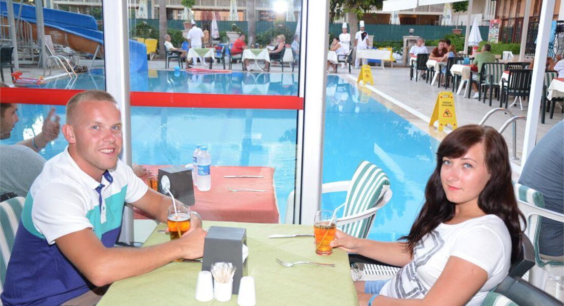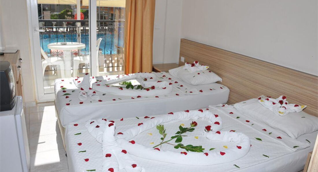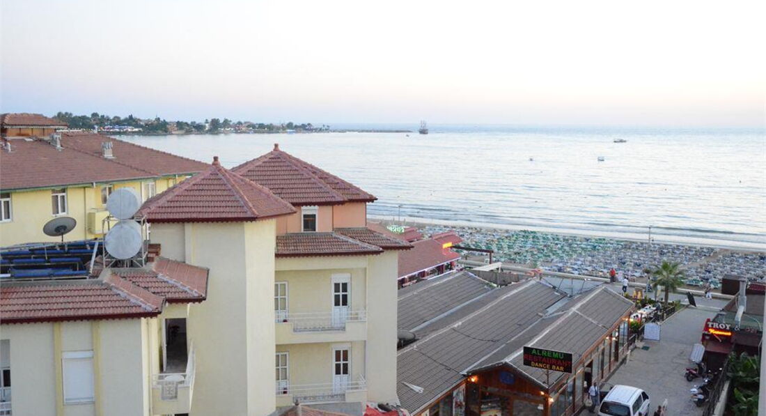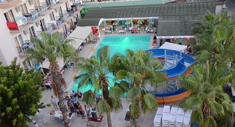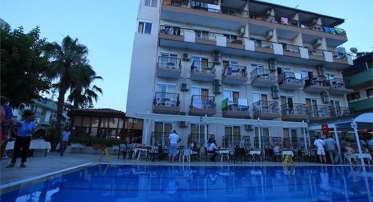 Територія та послуги: • відкритий басейн, 150 кв.м, 1 гірка • основний ресторан • бар біля басейну • сейф на ресепшен (платно) • обмін валюти • Wi-Fi (безкоштовно, у лобі) • пральня • медичні послуги • оренда автомобіля Розваги та спорт: • софт-анімація • жива музика (1 раз на тиждень) • турецька ніч (1 раз на тиждень) • Турецька лазня • настільний теніс • масаж платно • всі види водного спорту на пляжі платно Для дітей: • ліжечко, за запитом • відкритий басейн, 15 кв.м • дитячі стільці у ресторані • дитячий візок (безкоштовно) Живлення: • AI – все включено У концепцію входить: сніданок, обід та вечеря – шведський стіл, полуденок, місцеві алкогольні та безалкогольні напої безкоштовно (10.00 – 22.00). Імпортні алкогольні напої, всі напої після 22.00 – платно. У день виїзду після 12:00 усі послуги платні. Пляж: Муніципальний піщаний пляж знаходиться за 50 м від готелю. Протяжність пляжу становить 50 м. Шезлонги, парасольки, матраци – безкоштовно, пляжні рушники – платно. Захід у море – пісок. Кабіна для перевдягання. До оплати приймаються кредитні картки: Visa, MasterCard, Diners, Amex.