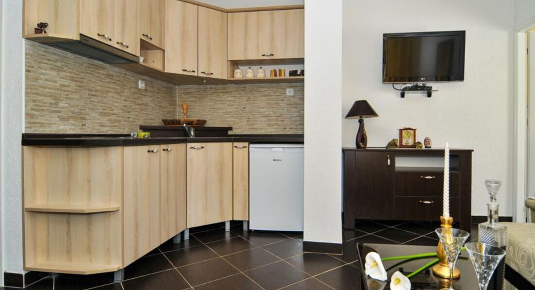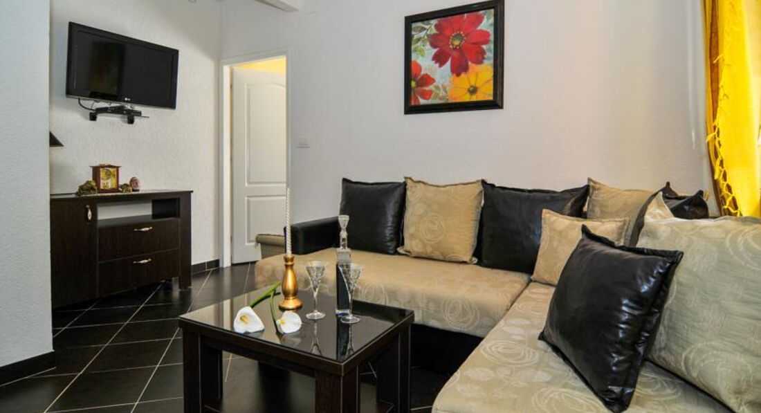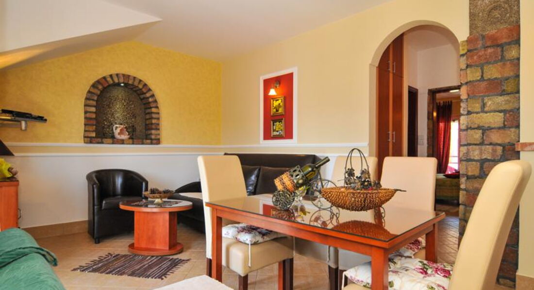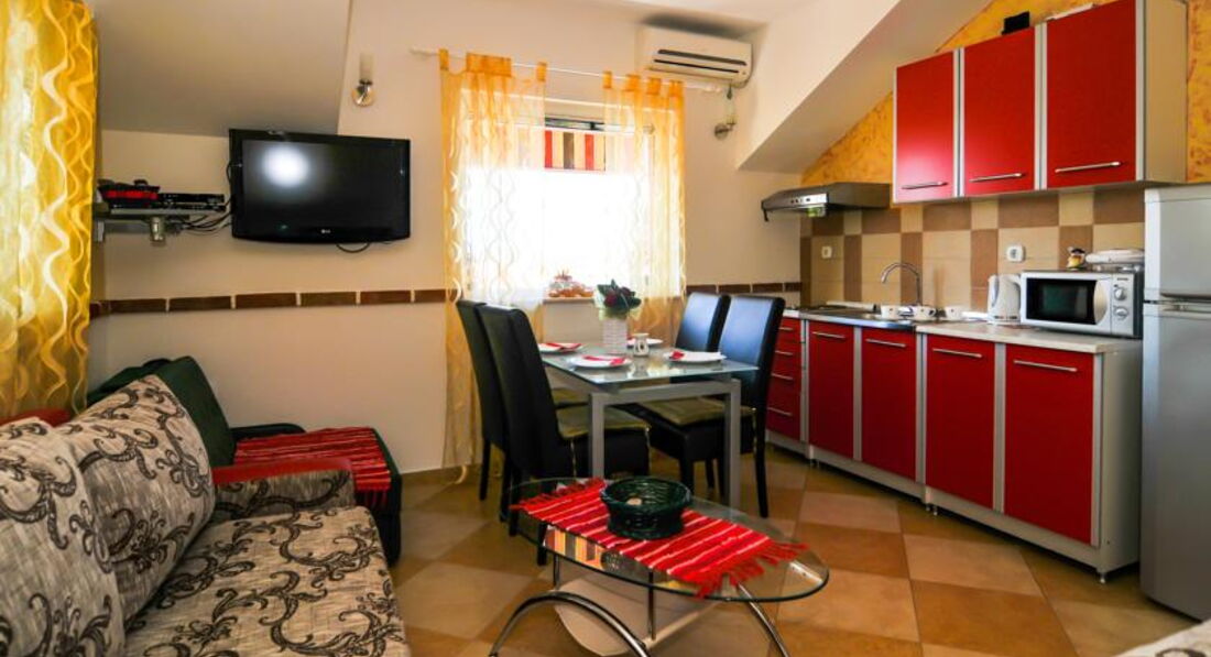APP 3 (4 особи): 55 кв.м., спальня з трьома ліжками, терасою, хол, кухня, вітальня (3+2), їдальня, два туалети, фен, праска, дитяче ліжечко, дитячий стільчик, РК-телевізор, пральна машина.