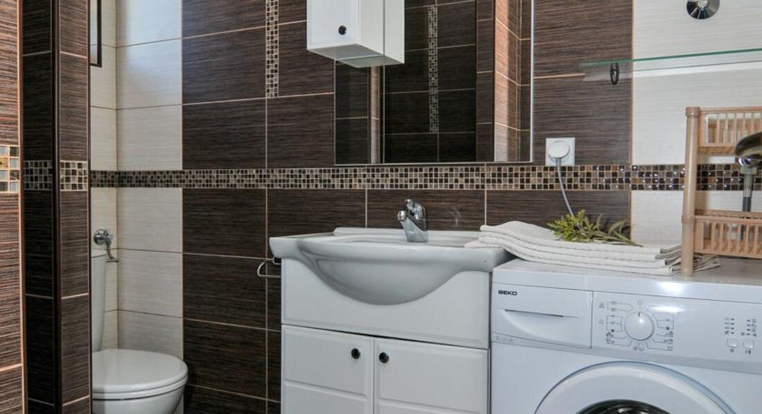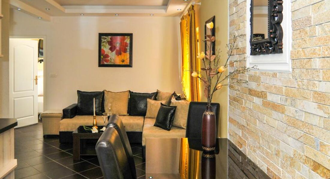 APP 2 (4 особи): 55 кв.м., спальня з трьома ліжками, терасою, хол, кухня, вітальня, два туалети, фен, праска, дитяче ліжечко, дитячий стільчик, РК-телевізор, пральна машина.