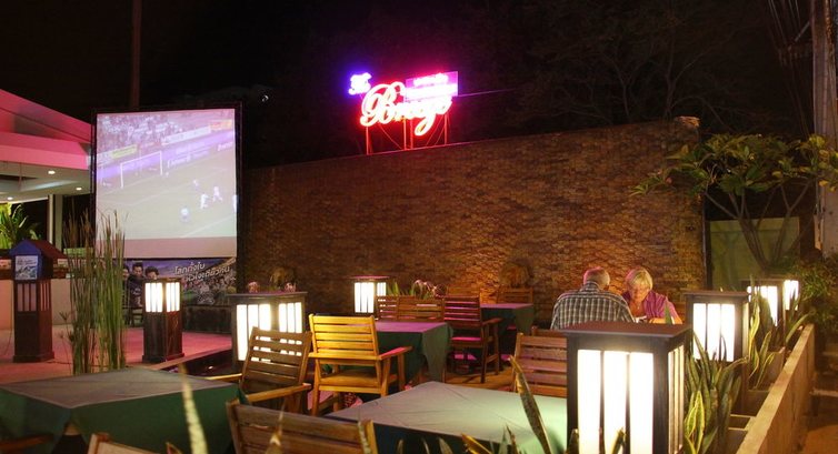 На территории имеется бар, дороговато, но зато никуда ходить не надо. Блюда тоже дороговатые. Рядом самый дешевый рынок в Паттайе – ночной базар на Джомтьене. Туда ходили каждый вечер за фруктами, барбекю, креветками. В отеле имеется хороший массажный салон. На рынке массаж чуть дешевле, но нам там не понравилось, в отеле лучше. Самый лучший массаж – тайский традиционный - 200 бат.