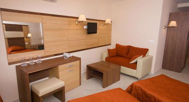 Отель очень новый, везде чисто и уютно. Мебель и сантехника новые.Убирают номера хорошо. Есть русскоговорящий персонал. В номере есть всё. Фен и холодильник бесплатно))). В номерах с видом на море ну ОЧЕНЬ шумно! Еда вкусная, до пляжа -перейти прогулочную дорожку (5 метров). Маленький бассейн - лежаки и зонтики бесплатно. Детской анимации замечено не было. Рекомендую молодёжи. Очень понравилось!!!!!!!!!!!