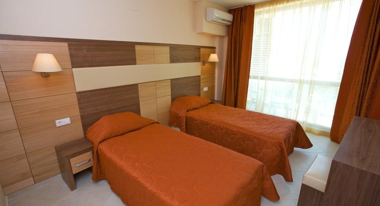 Были с мужем с 8по15.09.14 по линии Империал тревел, принимающая сторона Бон тур. В Болгарию езжу с 2010 года, но как организованный турист отдыхала первый раз. Отель расположен прямо на берегу, через променад от пляжа в северной части курорта за отелями Чайка и Гранд Виктория. Мы заселялись самостоятельно самыми последними в этот день. Тем не менее девушка нам выдала ключи от номера студио (с кухней) с видом на море на 4-ом этаже, пульты от кондея и ТV. На мой вопрос про интернет, сообщила, что он бесплатный. В номерах кабельный, а около ресепшена вай фай. У нас с собой лаптоп, поэтому выдали шнурок для присоединения к кабелю и пароль. Качество интернета очень приличное. Номер чистенький, недавно отремонтированный, маленький плоский телевизор, холодильник, инвертерный тихий кондей, кухонный уголок с плитой и мойкой, довольно большой балкон с пластиковой мебелью и сушилкой для белья. Мебель в номере немного старовата, зато ванная комната выше всяких похвал. Все чистое, новое, симпатичное. Не смотря на конец сезона в отеле было довольно много народу. На ресепшене очень приятные девушки и молодые люди. Некоторые сносно говорят и понимают по-русски, что нехарактерно для молодежи. На уборку в номере пожаловаться не могу. Влажную делали каждый день. Кровати не застилали, белье не меняли, полотенца поменяли 1 раз за неделю. Но надо учитывать, что это 3*, а не 5*. Про питание. Завтраки вполне нормальные для такого уровня отеля. Из горячего: омлет, глазунья, сосиски, колбаски, фрикадельки, вареные яйца были всегда. Один вид сухого корма с молоком, 2 -3 вида джемов, мед, фрукты (арбуз, виноград, яблоки), овощи (помидоры, огурцы), сыры- 3 вида, какая-то колбаса 3-4 видов, чай кофе, вода, напитки типа "юпи". Вообще, отель предназначен для отдыха молодежи, активных туристов. Рядом, справа есть кафешка и бич клуб, которые начиная с 9 часов вечера запускают очень активные музыкальные программы с орущими диджеями. Спастись, если Вы в номере, можно только закрыв окна и включив кондей. Правда, четко в 12-00 ночи это все заканчивается и можно послушать шум моря с открытым балконом. В день отъезда нас забирали в 18-00 в аэропорт, а номер надо освободить в 12-00. На мой вопрос о продлении номера девушка, посоветовавшись с менеджером, любезно разрешила нам быть до 17-00 в номере без доплаты. Я понимаю - конец сезона, но доплату могли и взять. Пользование холодильником стоит 5 левов в день. Но с нас денег не взяли :). Трансфер в аэропорт был организован четко и вовремя, нас везли вдвоем на машине (конец сезона). Возвращались на Сибири. Все было вовремя.