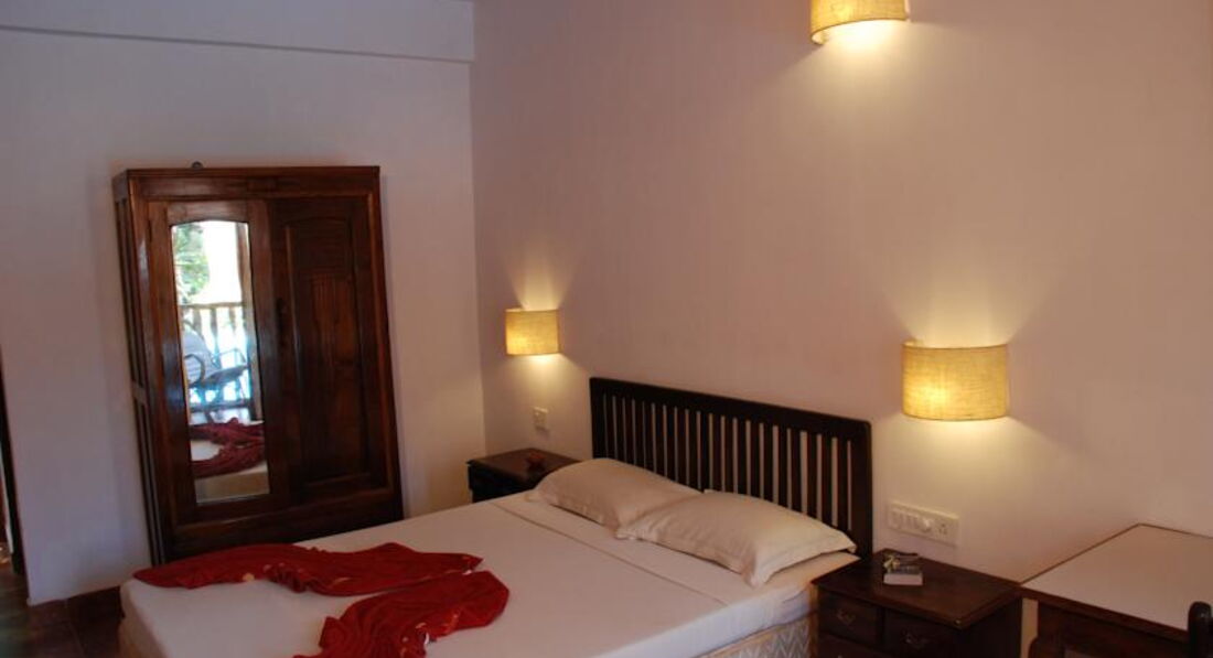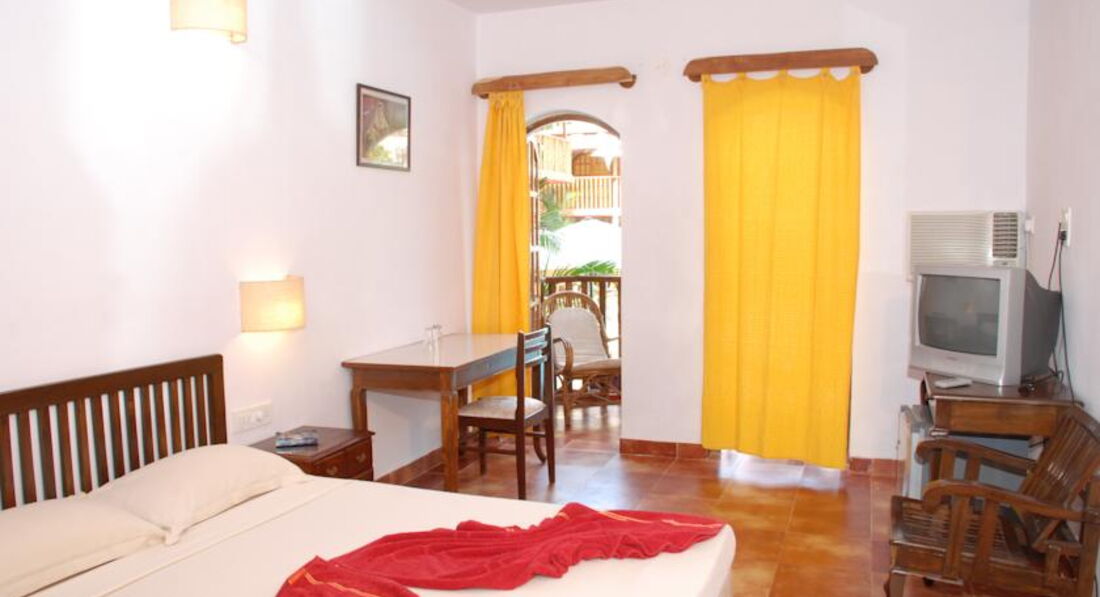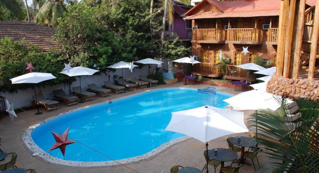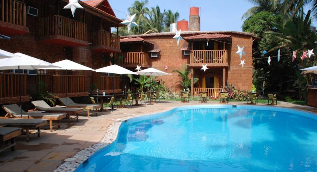 Отдыхали в январе 2015 года с подругой и племянником (12 лет).Заезд утром в 5 утра, за 20$ за номер нас заселили раньше времени заезда. Отель состоит из двух частей. Заселили на 2 этаж, обычный номер (я ждала худшего). Две двуспальные кровати, обычный душ (перебоев с водой не было), балкон. В отеле есть бассейны (чистые). Сам по себе отель в стиле Гоа (не роскошь). Завтра обычный скудный (как и в европе). Сама по себе еда специфичная, поэтому надо быть осторожнее в Гоа (вообщем это как повезет). Wifi только на ресепшене, ловит когда как, иногда не ловит вообще, скорость медленная.