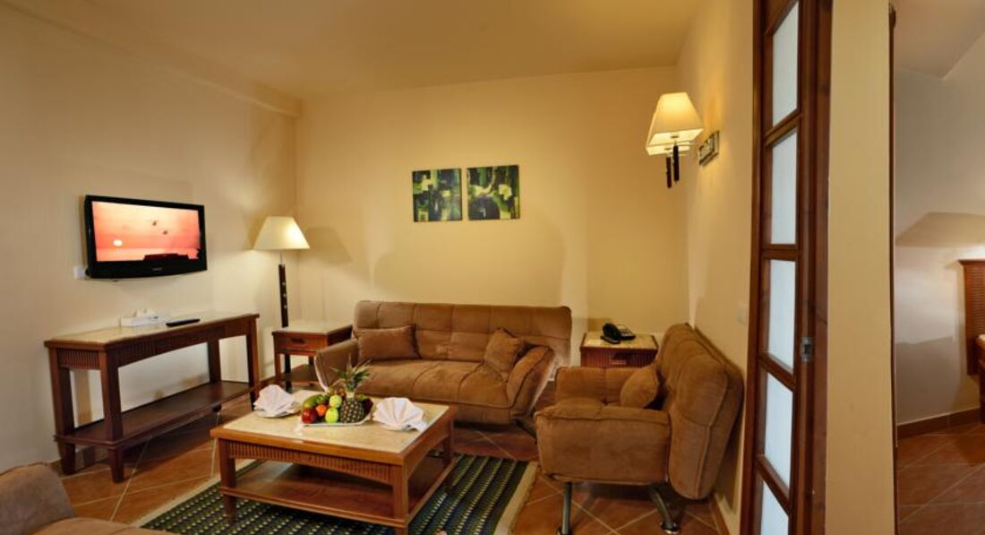 В отеле отдыхала с 2 детьми и друзьями. Заселение прошло очень быстро, номер тоже нас устроил, что порадовало и сразу сложилось хорошее впечатление об отеле, но это пожалуй и все что было хорошим. Народа в отеле было мало и казалось бы все внимание должны были уделять отдыхающим, но не тут то было на нас практически не обращали внимания ни в ресторане, о нем отдельно напишу, ни обслуживающий персонал в целом. Уборка комнаты первые два дня была не плохой, но уборщик стучал в дверь и просто нагло требовал чаевые) потом я заметила, что полотенца и вовсе не меняются, а просто он слаживает и вешает их на своё место, так же и с полотенцем под ноги. За все две недели один раз дал бальзам для волос и просто с разборками и на ресепшн 3 баночки гель-душа это на нас троих, а их старший меня вообще отправил в магазин купить) теперь про питание - отдыхала много где, в Египте 3-й раз, отдыхала и в 4-х звездочных отелях,но такого никогда не видела из фруктов порезанные яблоки в воде, бананы кусочками в каком-то соусе, финики, апельсины очень неприглядно нарезаные и фруктовый салат просто месиво) очень скудный выбор блюд ну просто иногда даже стояла в замешательстве что нечего покушать. Отношение на барах просто жесть, такое ощущение склпдывалось что я им что-то должна, это при том чтобы не попросил у них с когда все заканчивалось. Не было чая на баре, пиво всегда говорили что закончилось, бар около бассейна вообще не работал, только когда на праздники приехали отдыхающие египтяне у них все стало открываться и появляться, только находится в отеле уже было просто невозможно, постоянный ор, крики, в ресторане все сметали за считанные минуты. Пляж очень далеко, своим ходом не доберёшься, и автобус битком набитый ездит не каждый 30 мин а каждый час) КОМАРЫ!!!!! Это ужас они просто съели моего маленького ребёнка, причём не только на улице, но и в комнатах- наши друзья не спали порой по ночам, а хлопали комаров! Пишу отзыв про отель первый раз в жизни, всегда считала что найдутся привередливые люди кого что-то да не устроит, так всегда и было, всегда есть свои нюансы, но к концу отдыха как-то забываешь, но только не в этот раз .... НЕ РЕКОМЕНДУЮ этот отель вообще) из плюсов-ухоженная красивая территория