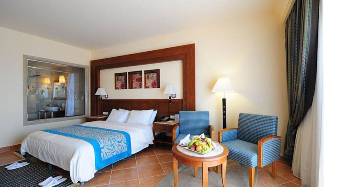 Розміщення: заселили нас досить швидко, так як прилетіли ми близько 19:00, до 5 хв ми вже розглядали свій номер, начитавшись багато поганих коментарів, ми були приємно вражені, так як по туру купляли самий дешевий номер і очікували набагато гіршого, все було робоче, в номері чисто, досить комфортно, і тільки зранку побачили, що в нас номер з видом на море...неочікували (без доплат).