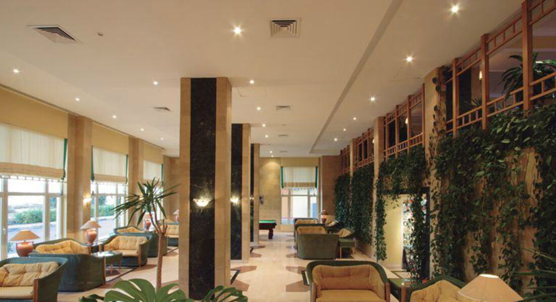 Общее впечатление от отеля прекрасное. Тихий, семейный,очень ухоженный.Приехали в отель вчетвером в 10.30.Разместили в номера через 15 минут без всякой доплаты.Номера двухкомнатные по 67 кв.м. Обслуживание за весь срок пребывания в отеле было образцовое.Персонал внимательный и предупредительный.Все пожелания почти моментально исполнялись.(В одном из номеров по приезду барахлил кондиционер.Сообщили на ресепшен,пока обедали все было исправлено без каких-то дополнительных денежных вливаний). Так как можно было пользоваться инфраструктурой всех трех отелей, питание было разнообразное и качественное.Анимация на высоком уровне.До моря рукой подать,с самого дальнего угла не более 10 минут ПЕШКОМ.Море мелковато, но с этим легко можно мириться если ты не законченный зануда.Если едешь отдыхать,получить заряд бодрости,то этот отель прекрасно для этого подходит.