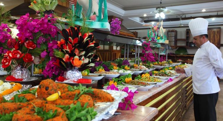 Бари та ресторани: головний ресторан розрахований на 400 осіб (критий, з кондиціонером, літня тераса, дитячі стільці); бар на пляжі, бар басейну, вітамін-бар (платно), диско-бар (платно). 4 ресторани A la Carte: середземноморський, азіатський, італійський, турецька - платно, за попередньою резервацією.
