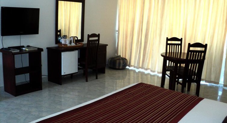 В отеле на мой взгляд самые лучшие номера , это делюксы, они расположены в большом четырехэтажном здании, там достаточно чисто, одна большая и удобная кровать, или две. Есть триплы, почти двухкомнатные, дверей только нет. Хороший стол, пара стульев. На балконе пара стульев и , не везде правда, небольшой столик. В номере есть холодильник. Сейфа в номере нет.