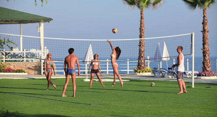 Территория отеля небольшая, но она ЕСТЬ! А еще есть просто отличная спортивная площадка на пляже. По вечерам дети собирались и играли с мячом во что только можно, да и родители в стороне не сидели. У отеля свой пляж, никого чужих, никто не пристает, спокойно оставляешь вещи, когда идешь в море. Правда у бассейна и на пляже нет полотенец, но это не минус.