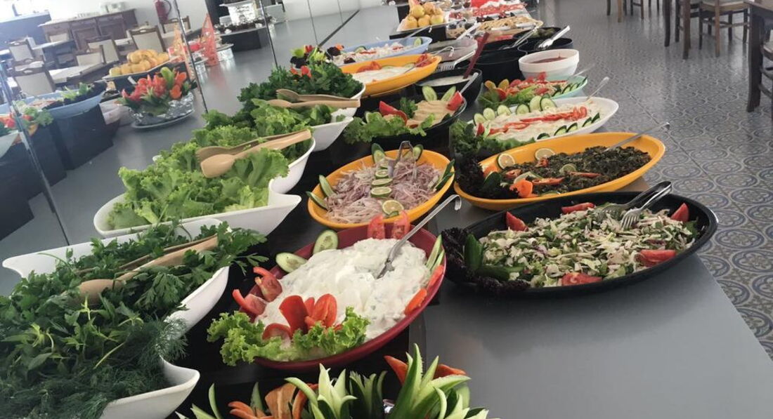 Обед и ужин хороши. У них там 4 емкости с горячим. А далее холодные закуски и нарезанные овощи. В эти холодные закуски клали все , что люди не съедали в обед, перемешивали и подавали на ужин. В принципе, так, наверное, в каждой тройке.