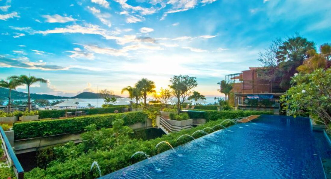 У отеля очень удачное месторасположение, корпус с рецепшионом находится близко к дороге, до остальных корпусов, которые заходят на гору, можно добраться на лифтах и через дорожки с зеленью и цветами. Оазис тишины и спокойствия среди шумного Патонга!