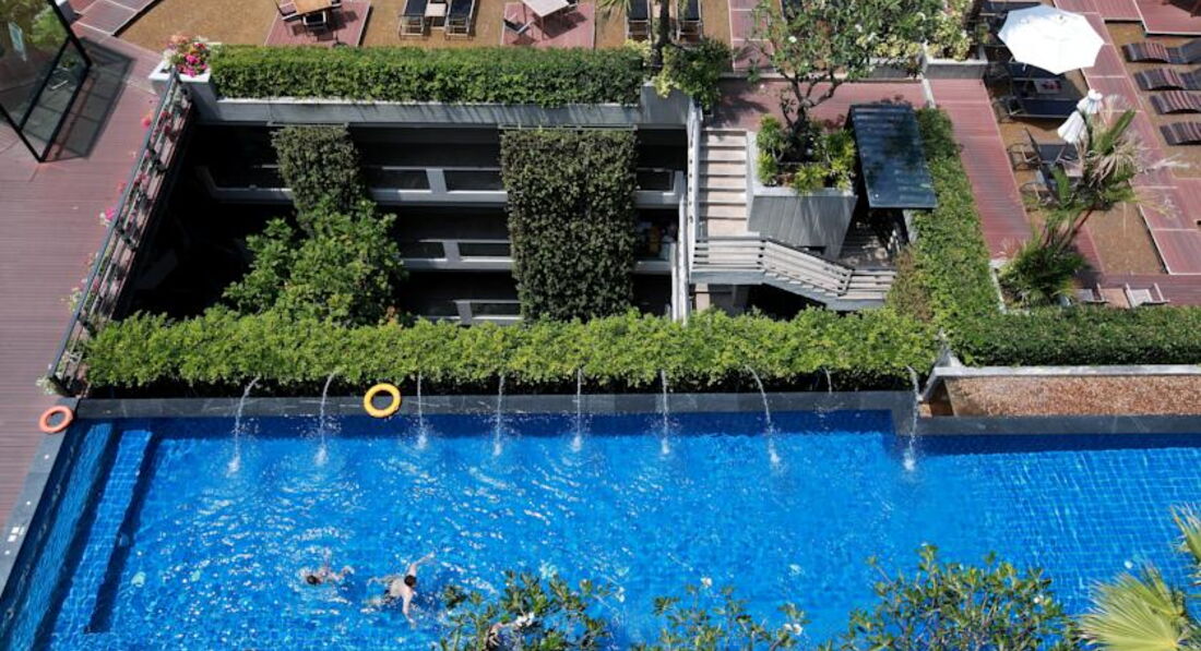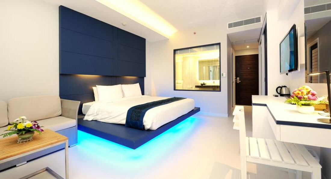 Отель очень удачно расположен, близко к морю и всей жизни острова. При этом в отеле не слышен городской шум. Номер брали с видом на море, очень красивый вид. Номер большой, кровать с нижней синей подсветкой, очень удобно ночью. Насекомых не было. Интересный дизайн отеля, с аллеей из орхидей, очень приятно. Правда первое время блудили доходя до номера, так как надо подняться на трех лифтах.