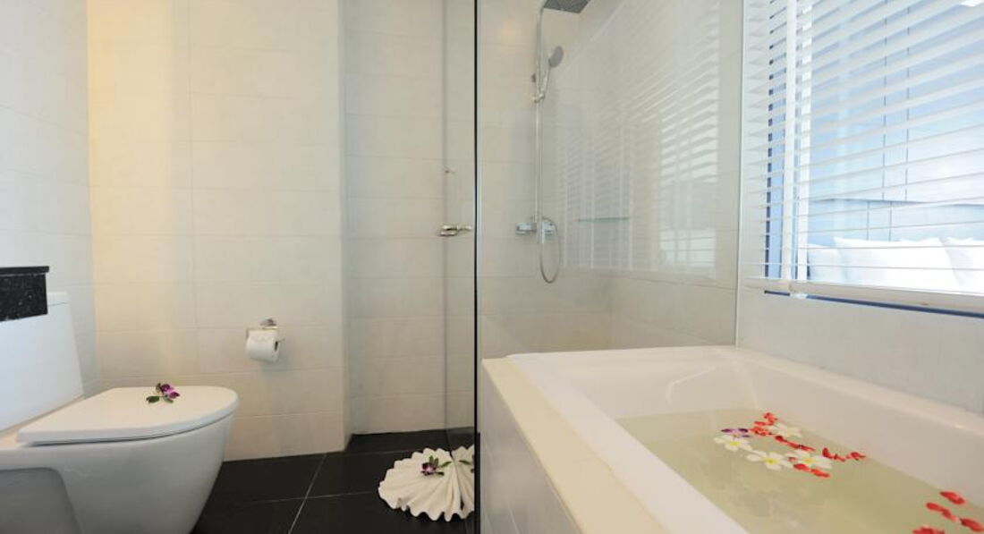 Отдыхали в отеле парой в сентябре 2016.Постараюсь быть максимально объективным. Опущу впечатления об отдыхе и сосредоточусь на отеле.В целом отель очень неплох. Расположен на самом севере Патонга, в довольно тихом месте. Пляж в 5 минутах ходьбы от отеля, в этом месте довольно свободен и чист. На пляже нет ни зонтиков ни шезлонгов, это какое то решение по защите окружающей среды. Но лично мне, это было не важно. Отельные полотенца вполне устроили. Вдоль пляжа пальмы, так что если хочется, можно спрятаться в тени.Ранее летал в Паттаю, море и пляж намного лучше чем там.Остров как никак.Сам отель многоуровневый.корпуса расположены лесенкой. Жили в корпусе D, очень удачное расположение. Номер с выходом к бассейну брать не стоит, лишнее.Так как в небольшие бассейны выход из 5 номеров, поэтому плещущиеся китайцы, которых в отеле превеликое множество, не дадут вам насладится спокойным, романтичным купанием.Номера отеля очень приличные.В принципе на фотографиях отельера истинная правда.Конечно все не идеально новое, так как местный климат быстро и напрочь убивает все творение рук человеческих.За отелем хорошо следят, постоянно что то подкрашивают, подбеливают. При этом никаких собственно неудобств не испытываешь.Уборка номеров ежедневно, что для Тая редкость. Смена белья то ли каждый день, то ли через день.Я не заметил даже, все время было чистое. Полотенца меняют ежедневно. Каждый день в номер литр воды, чай, кофе , сахар. Шампуни, мыло тоже часто подкладывали.Мини_бара нет, но не знаю, кто им пользуется вообще.Основной бассейн небольшой, но нам хватало. Мало лежаков возле бассейна. Так что если спите долго, можно не успеть. Ну хотя море рядом.Питание. Довольно много всего, но мне показалось несколько однообразным.Фрукты, йогурты, выпечка, всевозможные блюда из яиц. Питаться можно неплохо.На 2/3 питание расчитанно на китайцев, составляющих большинство в отеле. По этому много непонятных блюд. Если вы любители экзотической кухни, вам повезло. Несмотря на это, голодными в любом случае не останитесь. Есть даже супы-пюре на завтрак. Вечером работает ресторан. Цены чуть выше чем в городе, но не принципиально. Если лень, можно поесть и в отеле. Доставка еды в номера есть.В ресторане каждый день недели разная кухня.Читайте вывески! Бар у бассейна обычный: коктейльчики всякие итд. Для Пхукета, территория у отеля довольно большая и зеленая, но погулять особо не получиться, так как, как я ранее писал, отель на крутой горке.Через дорогу от отеля магазинчики, кафешки( уменьшительно, потому как все маленькое), выездная торговля всякая, сувенирные магазинчики( в них продается все то, что в городе, только дешевле).Прогулка до центра Паттонга средним шагом где то минут 15-20. В 5 минутах ходьбы начинаются магазины, массажные салоны итд, тянущиеся до конца Патонга.Расположение отеля очень удачное. Вообщем отель неплохой, хотя и без особых восторгов. Но это Тайланд, не Турция)).