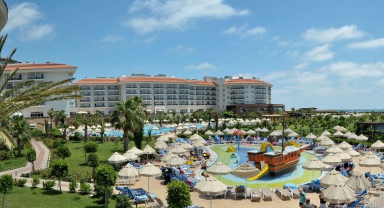 В целом отель оставил хорошее впечатление. Дорога от аэропорта около 2 ч -учитывайте при заказе. Как уже писали в других отзывах- в отеле 90% немцы. Персонал немного говорит на русском. Минимального знания английского будет достаточно. В отеле есть два бассейна, ещё один детский и с горками. Имеется крытый бассейн- на первом этаже рядом со спа. В спа выдают полотенца 9:00-19:00. Территория зелёная, ходят павлины,куры и гуси. Пляж широкий с навесами, работает бар на пляже- можно брать напитки. Пляж песок,но при заходе в море галька. Если есть тапочки- можно взять. У меня не было. При заходе в море практически сразу глубина. Лежаков у моря полно- можно прийти к 10-11 и все равно будет куча свободных. Немцы все на бассейнах. Вот там чтобы занять лежак надо встать очень рано. В бассейнах полно народу. Зато на море- супер. Мы ходили ещё в крытый бассейн (в самую жару)- в нём холодная вода- освежает. Пекут лепёшки- в 2 х местах- возле детского бассейна и при выходе с пляжа. Мы брали у женщины постарше- может это совпадение- но у той которая помоложе лепёшки были сыроваты. Питание стандартное для Турции. Приятно удивило наличие соков- а не разведенного порошка. Наливали прямо из коробок (тетрапак). Но расстроило что турецкий кофе только платно. Я в Турции такое впервые вижу. Из фруктов были арбузы, черешня, сливы, яблоки ,виноград, дыни, нектарины, абрикосы. Довали мороженое на баре возле бассейна и потом на ужине. Из мяса- курица,баранина. Были креветки. Мы ездили от тез тура- удивились что нет их стенда, как впрочем и других наших туроператоров. Мне объяснили это тем что русскоговорящих туристов в этом отеле мало. Поэтому выезд из отеля смотрите в синей папке на рецепшн. В номере у нас убирали каждый день, пополняли шампунь, гель для душа, бальзам. Мини бар бесплатно- была кола, фанта, минералка, пиво. Кондиционер работал хорошо. Сейф мы не брали- он платно. Интернет ловил везде. Вечером скучновато. Немцы играют в настольные игры)) Если вы собираетесь компанией в этот отель - думаю что вам понравится. Если едите в надежде познакомиться с кем нибудь и пообщаться- не сюда.