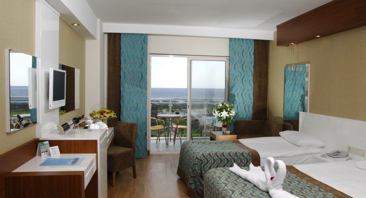 Номер был на 1 этаже напротив ресепшн, вид из окна на бассейн и море. Ничего не доплачивали. В номере сейф(которым мы пользовались бесплатно,он не был закрыт :)) мини-бар (кола,фанта,минералка,два пива и питьевая вода) один раз это все предоставляется бесплатно,после уже платно,ну естественно кроме питьевой воды,ее каждый день приносит официант где-то в 15.00-16.00, кондиционер если настроить то чуть ли не морозил)), большой шкаф для одежды, много полок, ящиков, есть где расположиться, ванная все как обычно, чистенько и без поломок. Есть телевизор, который у нас упорно не хотел работать, но как оказалось потом просто не была подключена антенна. Вай фай ловит в номере и на всей территории отеля (на пляже даже лучше чем в самом отеле, можно даже по скайпу звонить), для входа в интернет логин-номер вашей комнаты, пароль - дата вашего рождения полностью, если не подходит именно ваша, перепробуйте даты рождения всех живущих в комнате))) Уборка в номере ежедневная, раза 3 за 10 дней меняли постельное белье, полотенца меняли каждый день, не зависимо от того на полу они были или нет, горничная у нас каждый день была одна и та же, очень милая девушка, убиралась на совесть, здесь твердая пятерка.