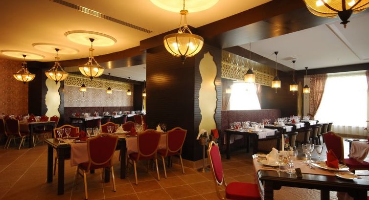 Бари та ресторани: Myra Restaurant: сніданок з 07:00-10:00, пізній сніданок з 10:00-10:30, вечеря з 18:30-20:30, нічний суп з 23:30-00:30. Okeanus Restaurant: обід з 12:30-14:00. Шведський стіл.Турецький ресторан "Topkapi", Азіатський ресторан "Dharama", Італійський ресторан "Ristorente". Годинник роботи з 19:00-21:00. Потрібна попередня резервація. 1 відвідування на тиждень безкоштовно. Ресторани працюють лише у літній сезон. Okeanus Snack: легкі закуски з 12:30-15:00; Street Bar: легкі закуски та час чаю з 16:00-17:00; Лобі-бар Coral; Бар біля басейну; Бар на пляжі; VIP Side Bar; Carya Bar.