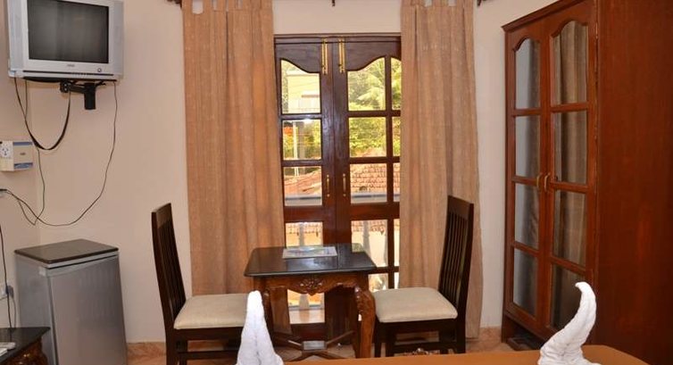 Всем добрый день. Вот вчера вернулись с отпуска и сразу решила написать отзыв. Мы летали первый раз в Гоа и ,очень внимательно читали отзывы об отелях. Начну с самого отеля. Привезли нас в отель в 16:20 мы попросили ,чтоб номера дали не ,очень высоко Т,К. у сестры болят ноги.и нам дали номера на 2ом этаже.№5 и №6. В номере есть телевизор,холодильник,душ,сейф,кондиционер,большая кровать.В номере да и в отеле ,чисто. Убирают как попросишь. По сути отель вам нужен только для ночлега. Завтраки стандартные с 8:30 до 10:30. но мы завтракали всего 1раз т.к. уже в 8 утра были на пляже.Там можно везде покушать в шейках. Цены ,очень минимальные. Ездили на экскурсии ГОА за один день. Кто в первый раз советую съездить,нам понравилось. А вообще нужно арендовать байк .Его цена 300 рупий. и тогда вы можете посмотреть ,что угодно.И ещё рядом с отелем как вышли и на лево есть русское кафе Матрёшка.Там Хозяева прекрасная семья из Санк-Петербурга Ксюша и Вадим,очень замечательные люди.Они нам предлагали русскую кухню и очень вкусные морепродукты. Лозунг их него кафе " У нас можно всё.Кроме наркотиков". Обязательно посетите Матрёшку не пожалеете. И экскурсии через них дешевле. И фотосесии у них есть в индийской одежде. А ещё хочу сказать тем кто едет первый раз. не берите с собой много вещей они там не нужны. Даже если,что то понадобится там можно купить,очень дёшево. Зато домой можно привезти кучу всякой косметики,лекарств и вкусных фруктов. Если кто очень придирчивый и брезгливый вам не сюда. Мы остались ОЧЕНЬ довольны. и обязательно ещё вернёмся.!!!!!!